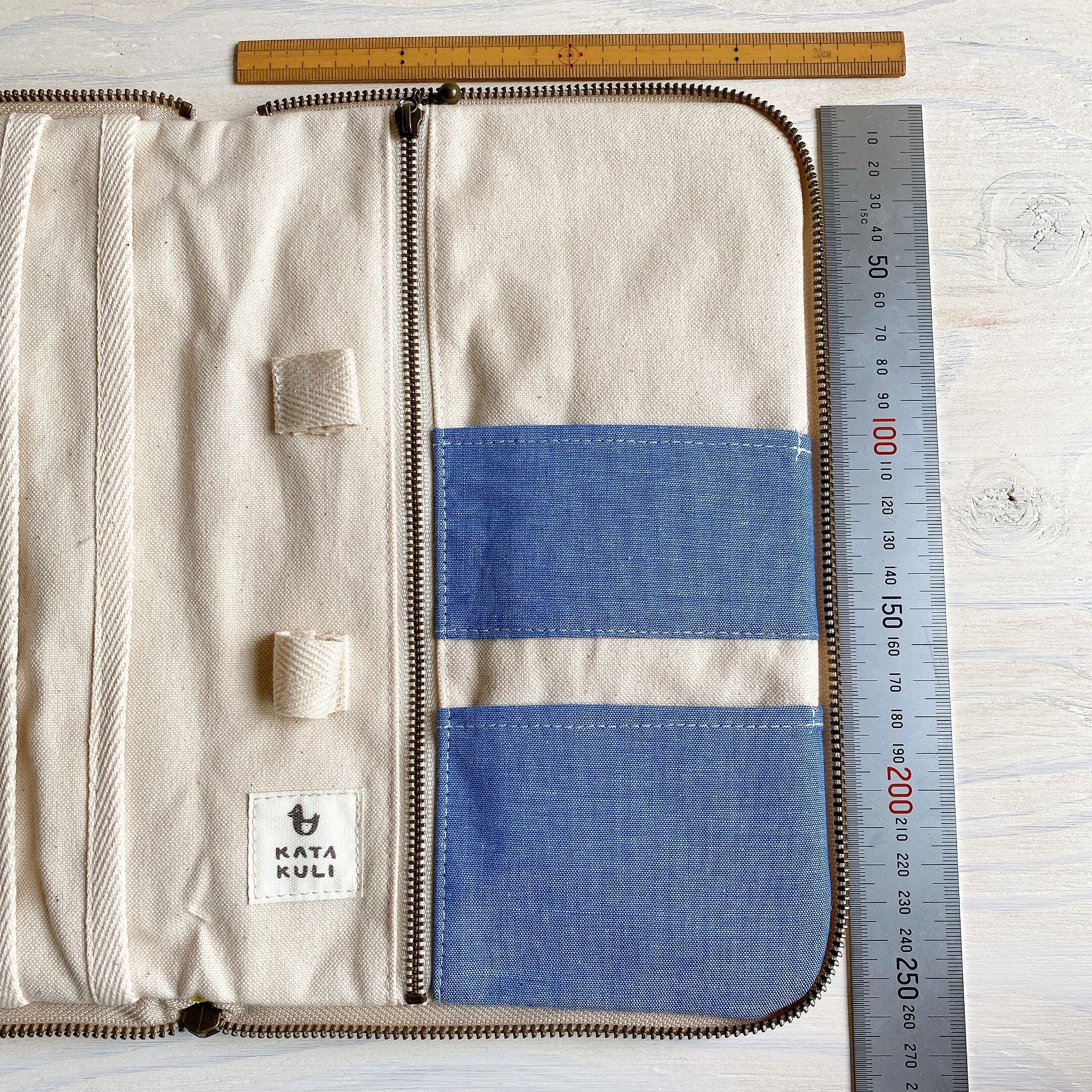 ケースがパカっと全開になるように、ファスナー止まりの部分に工夫をしています。