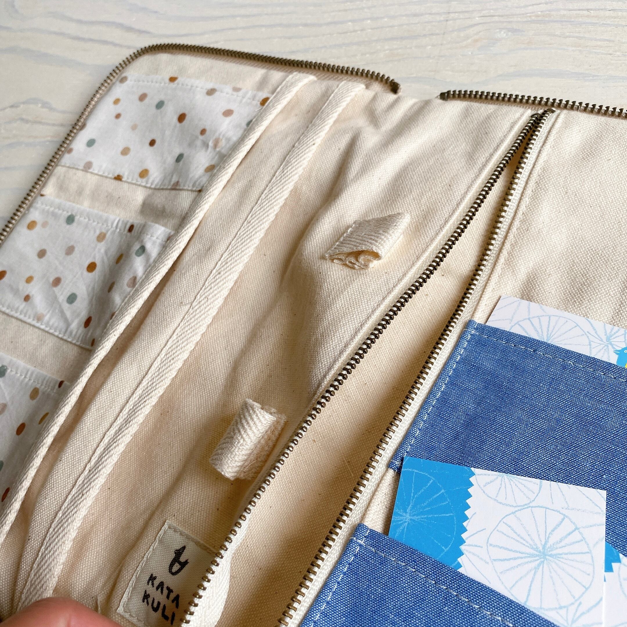 ケースがパカっと全開になるように、ファスナー止まりの部分に工夫をしています。