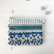 ファスナー開きのお部屋が3つある薄型ポーチです。