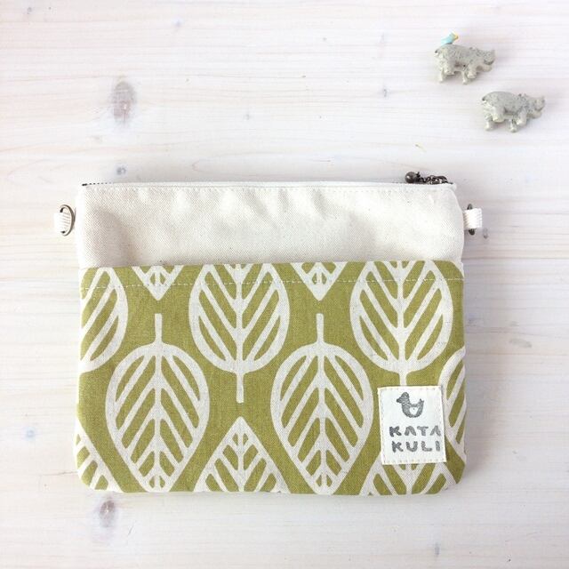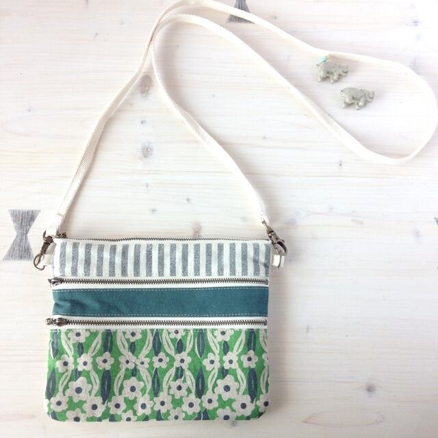 ポシェットにもなります*3ファスナーポーチ(フラワー・グリーン)