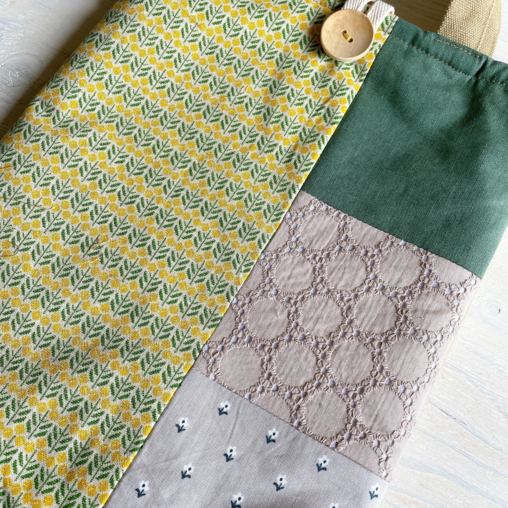 表面は4種類の生地を組み合わせ、ワタを挟んでふっくらしています。
