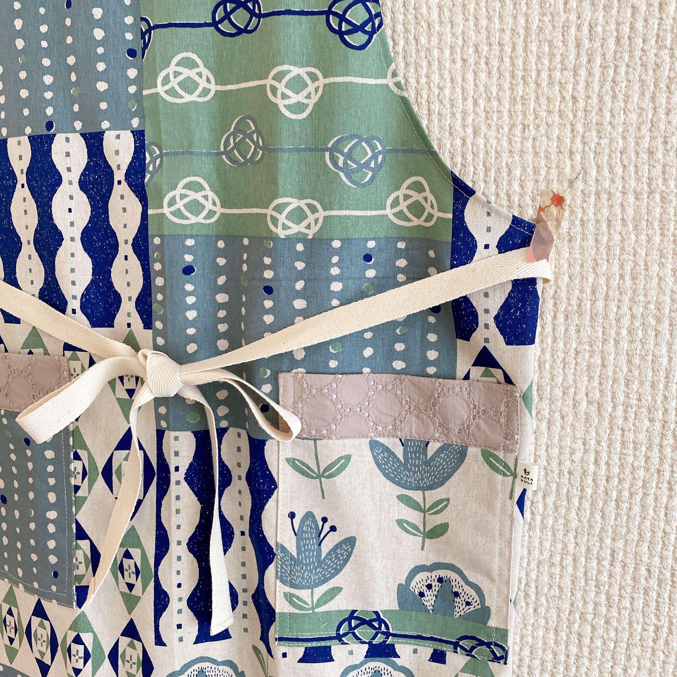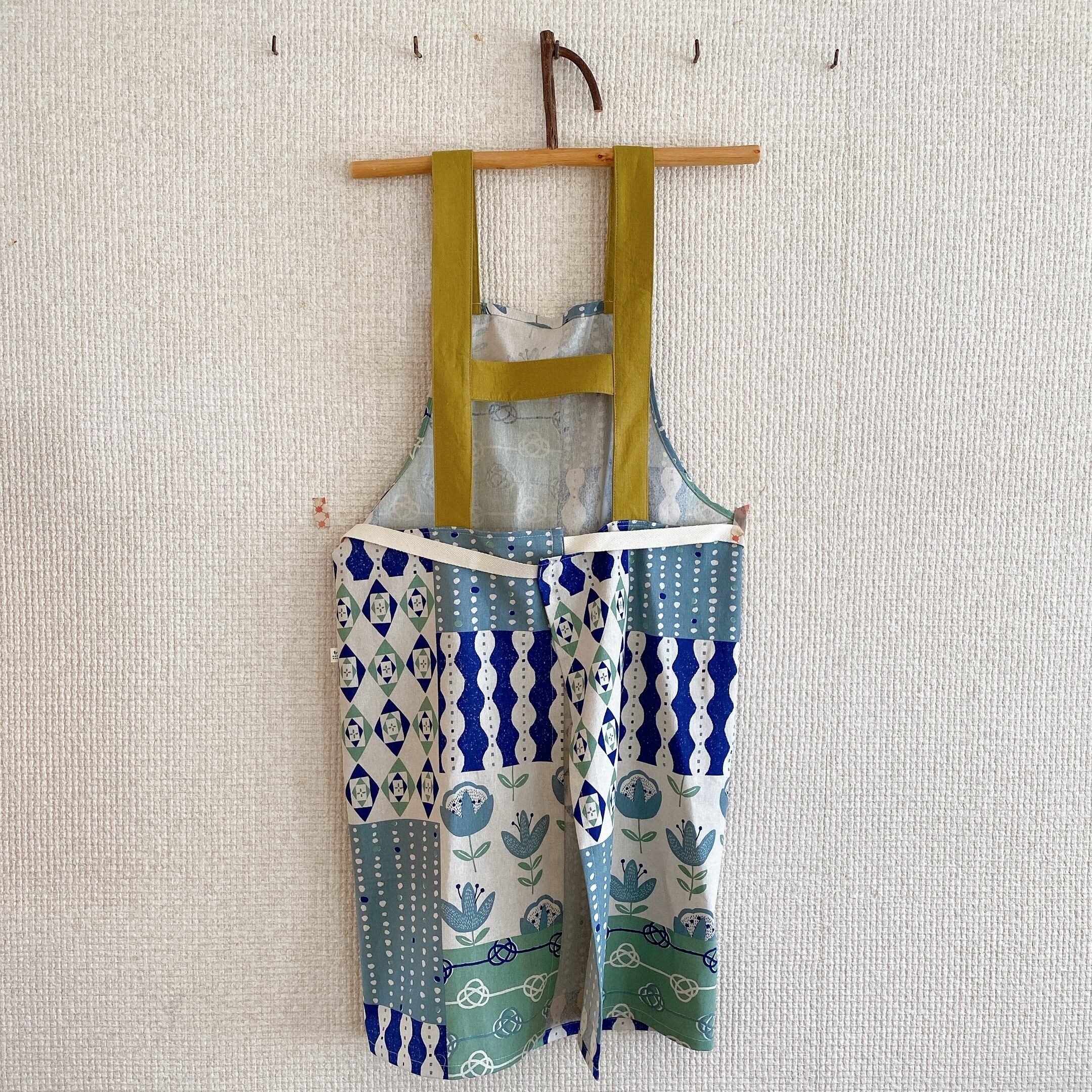肩ひも後ろはHの形。おとなエプロン(ミズイロ)