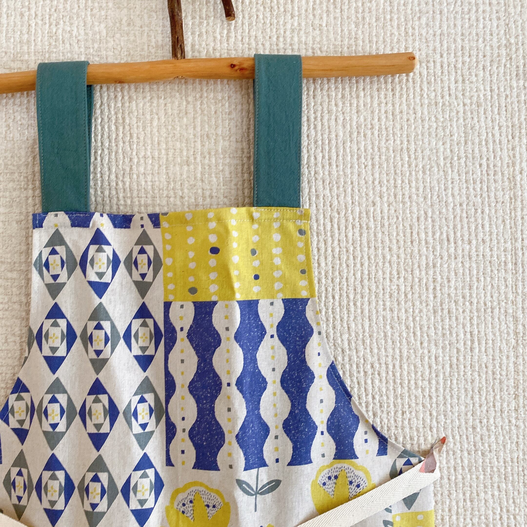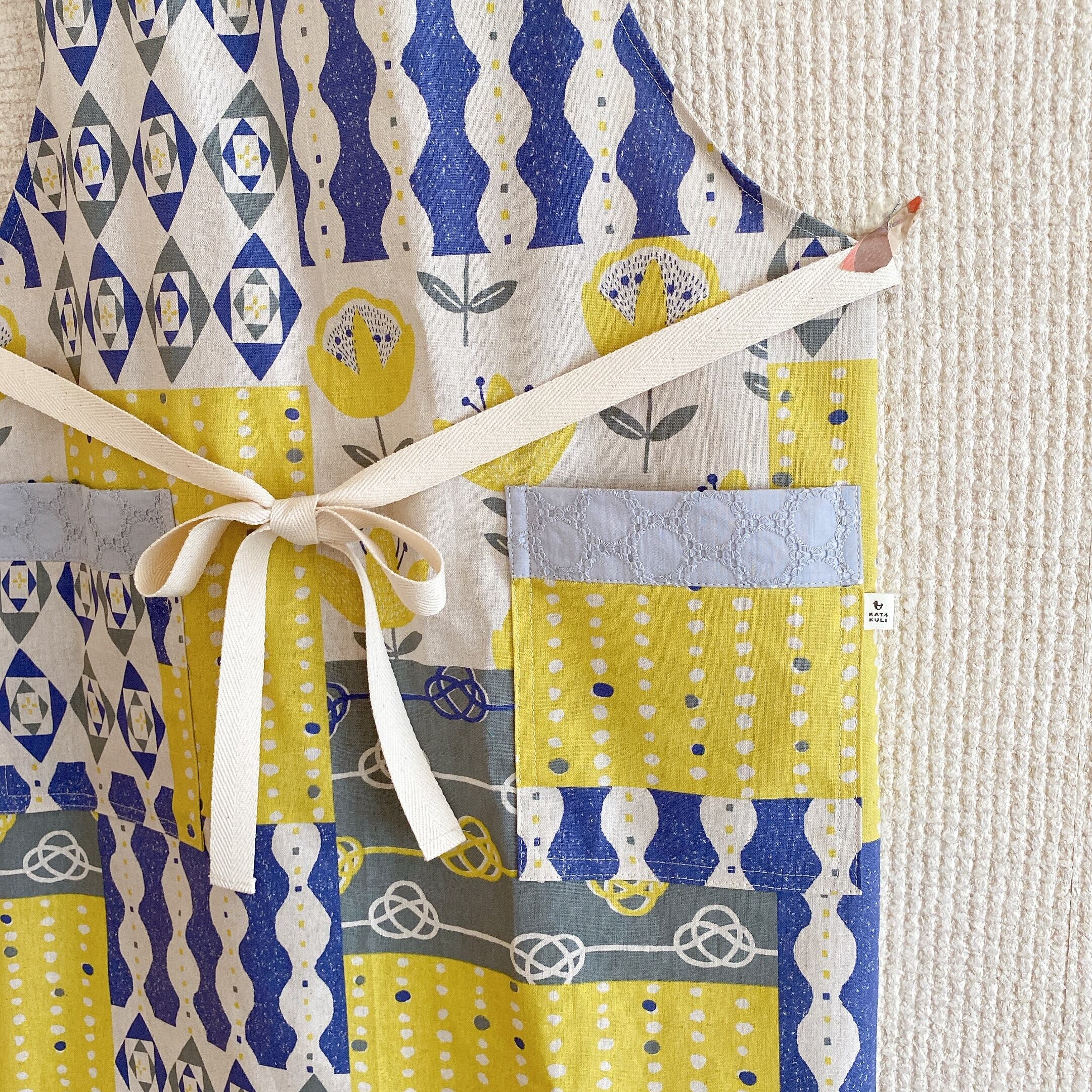 肩ひも後ろはHの形。おとなエプロン(キイロ)