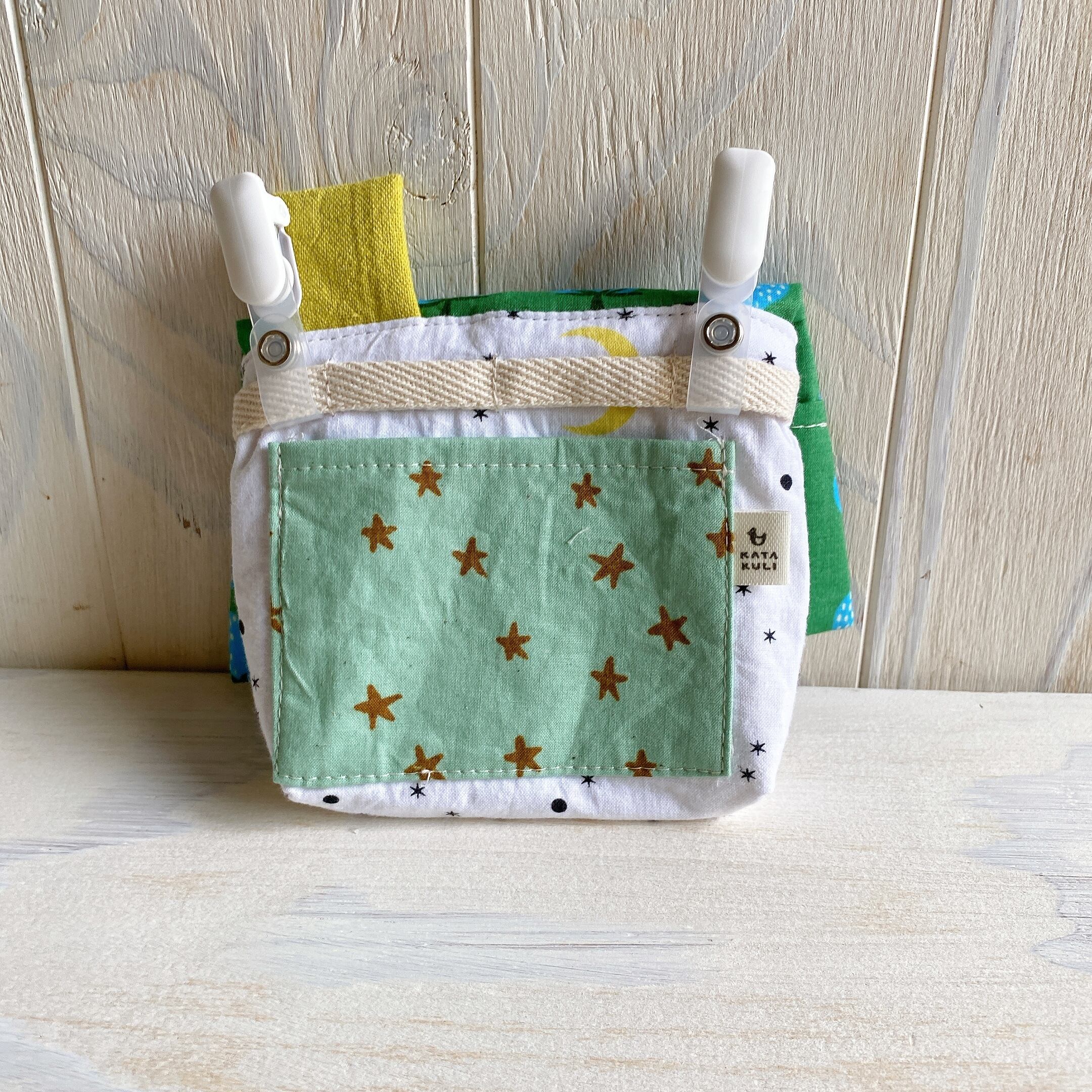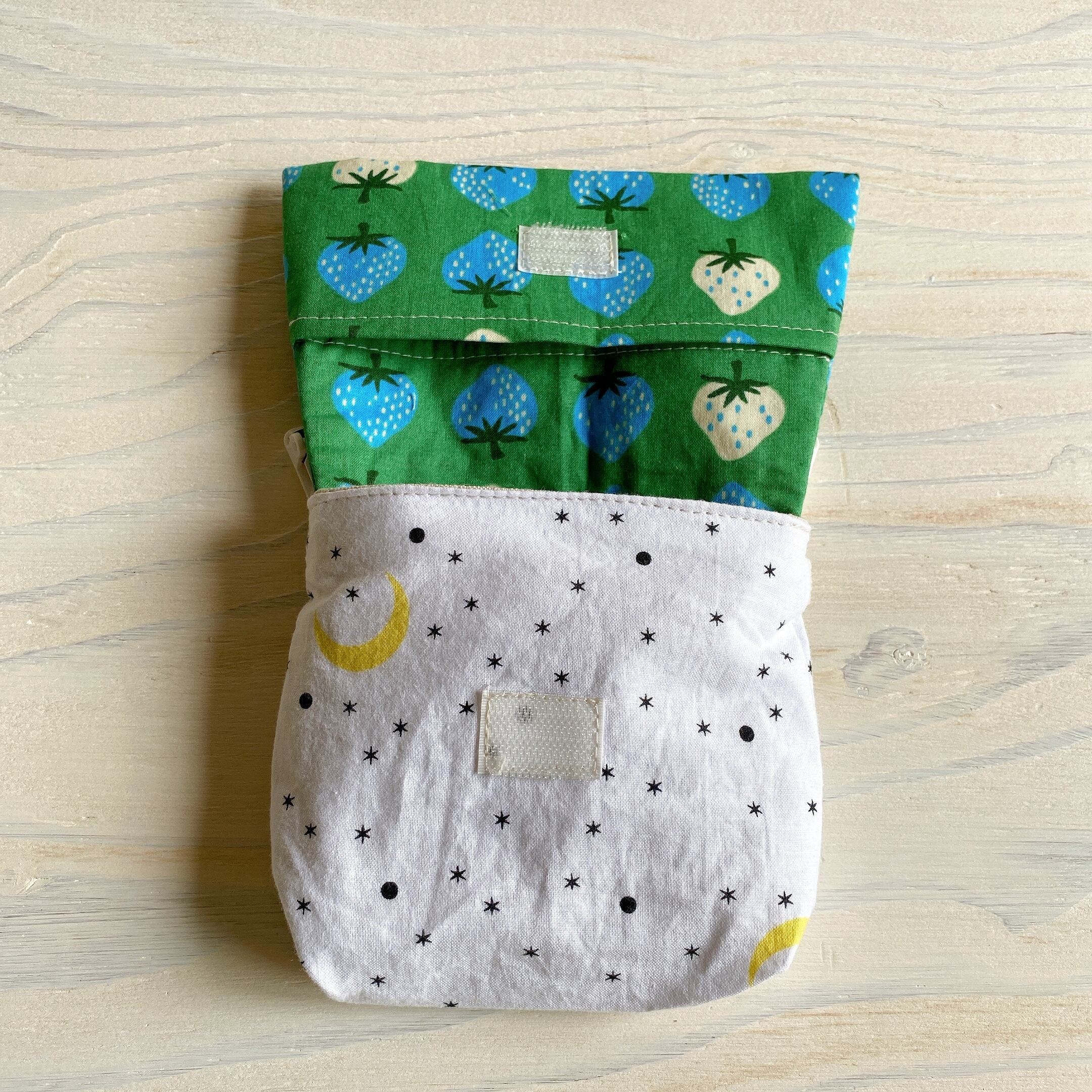裏にはちいさいポケットを付けて絆創膏なども持ち歩けるようにしました。