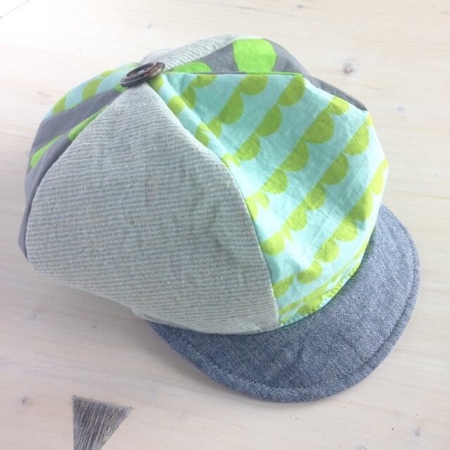 相性の良い3種類の生地を組み合わせて賑やかなキャスケットにしてみました。