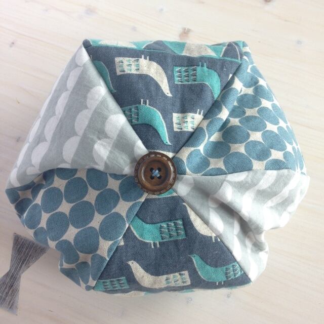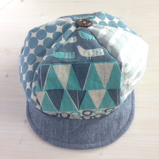 相性の良い3種類の生地を組み合わせて賑やかなキャスケットにしてみました。