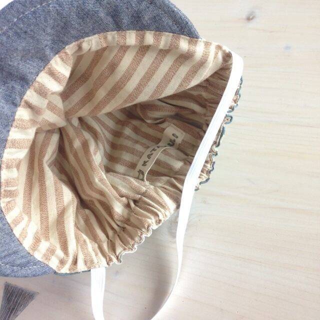 うしろがぐるっとゴムになっているのでかぶりやすくて長く使っていただけると思います♪