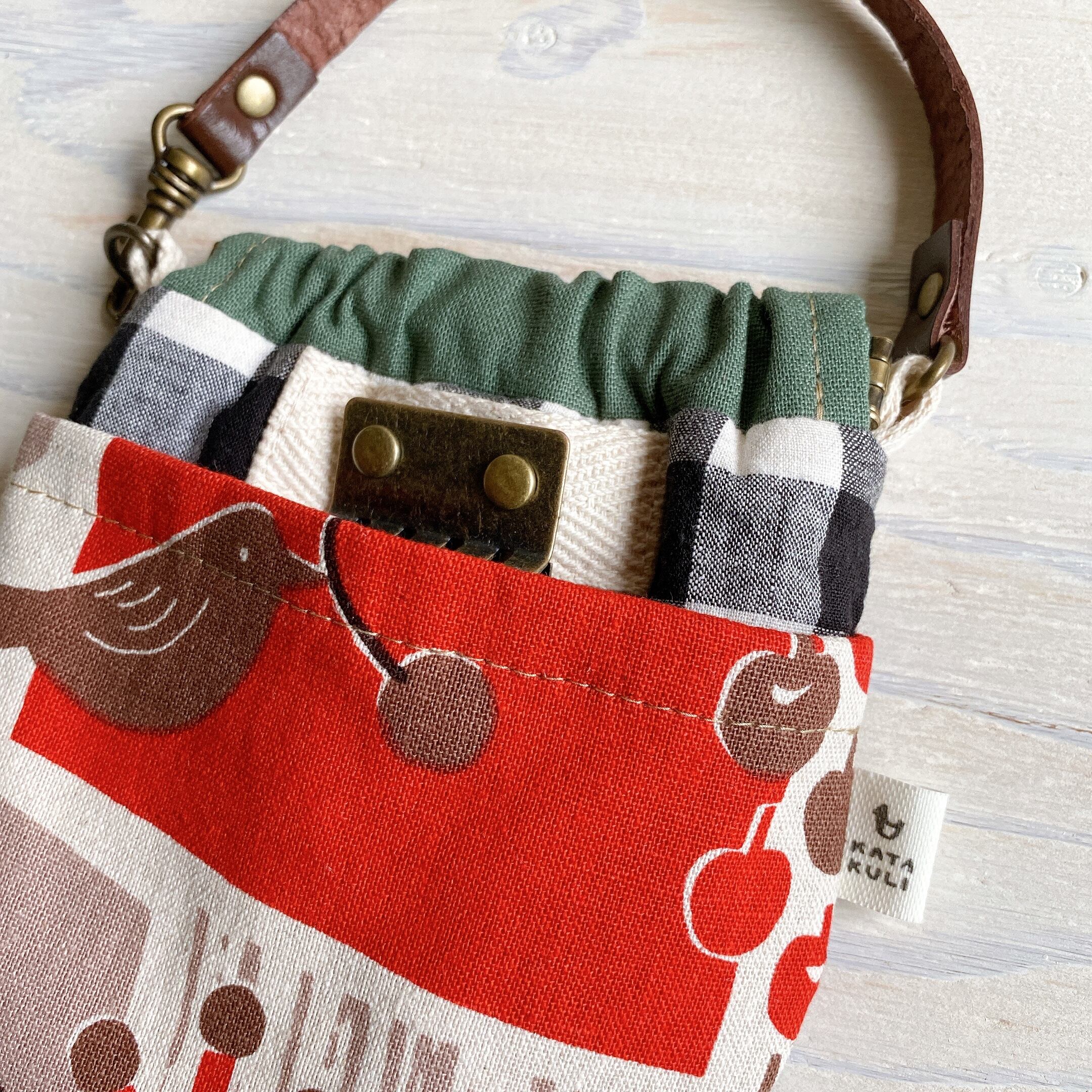 ばね口ミニバックキーケース(鳥と木の実・レッド)