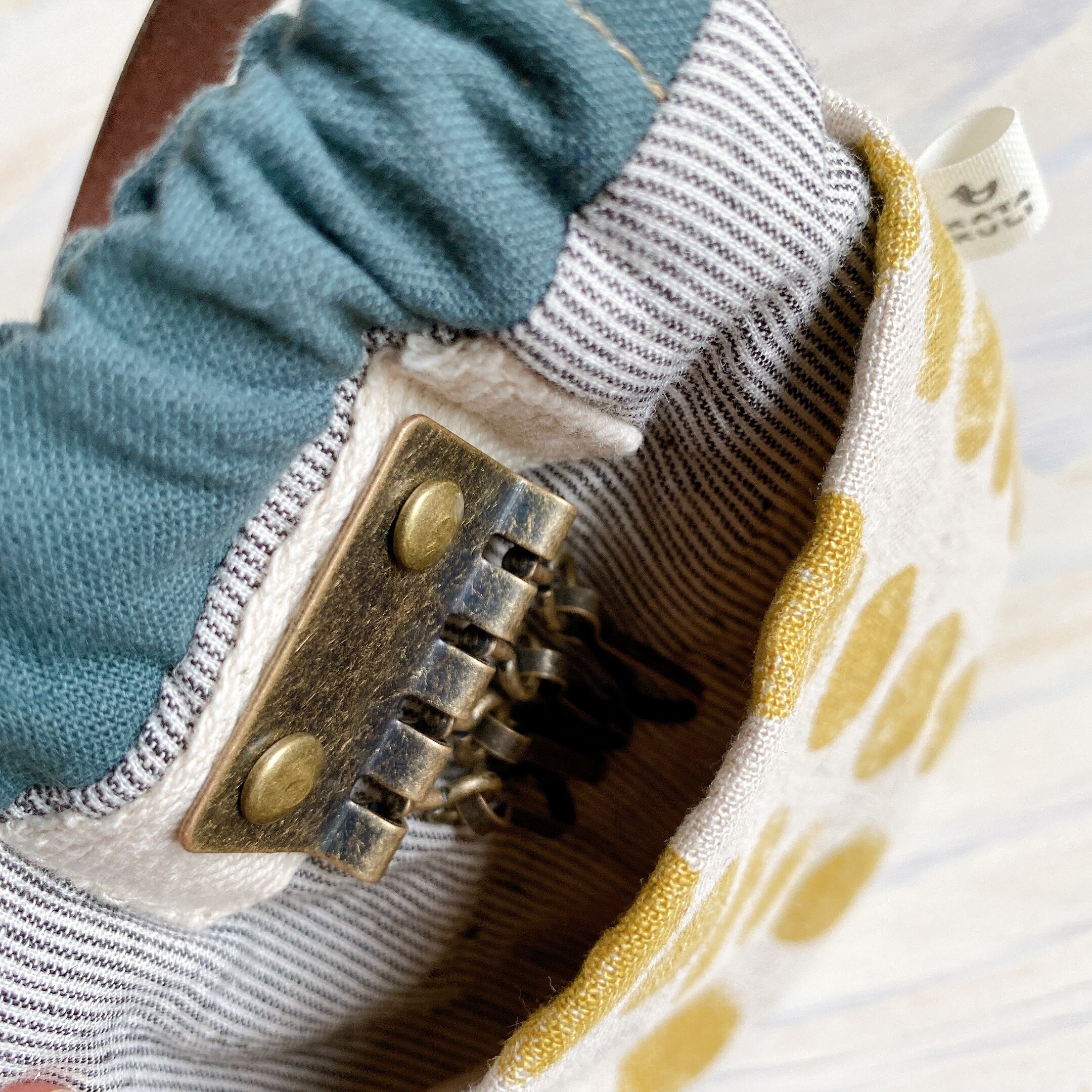 入り口がばね口になっているので、中のものがこぼれにくく安心です。