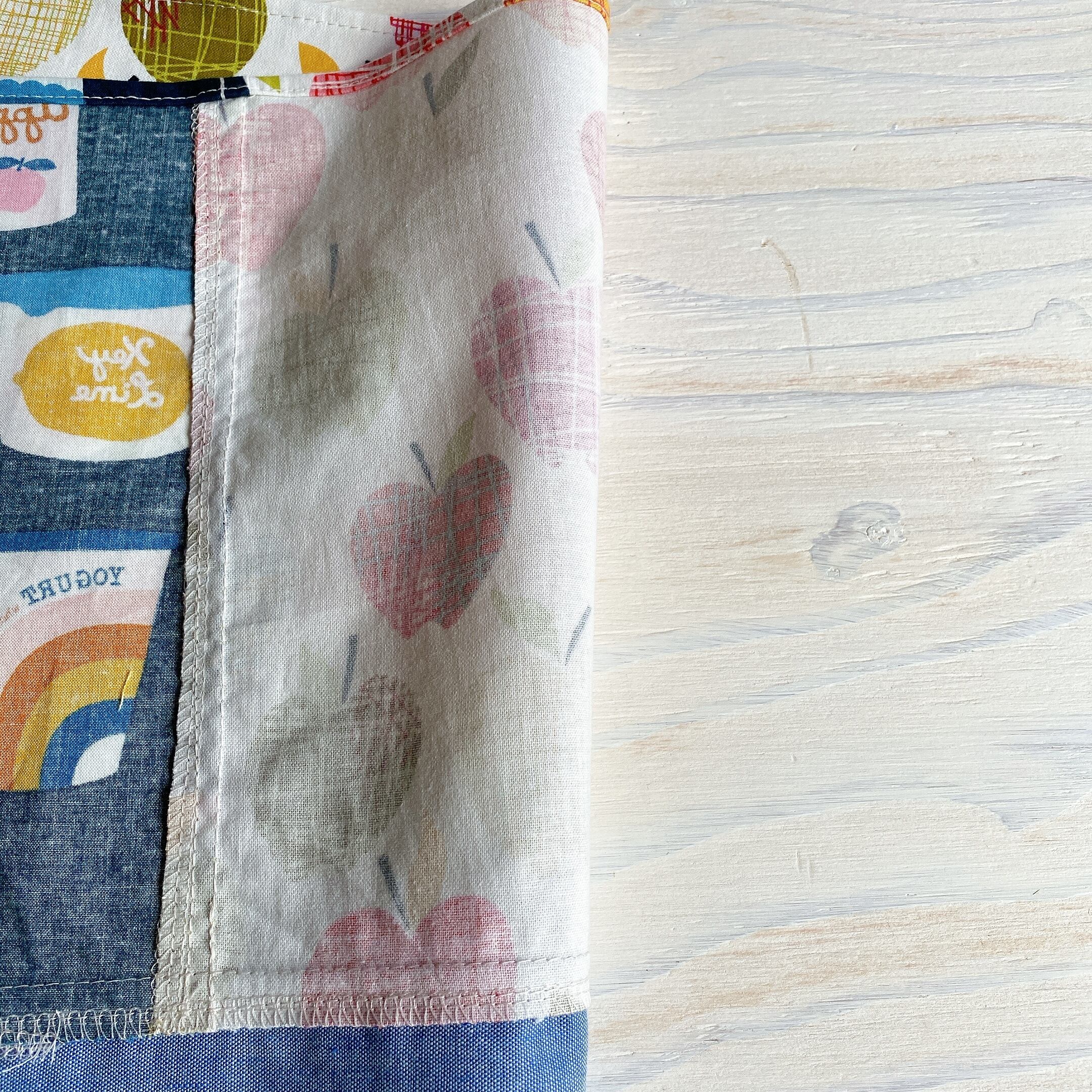 縫い合わせている部分には4本針ロックミシンで布端を処理しています。