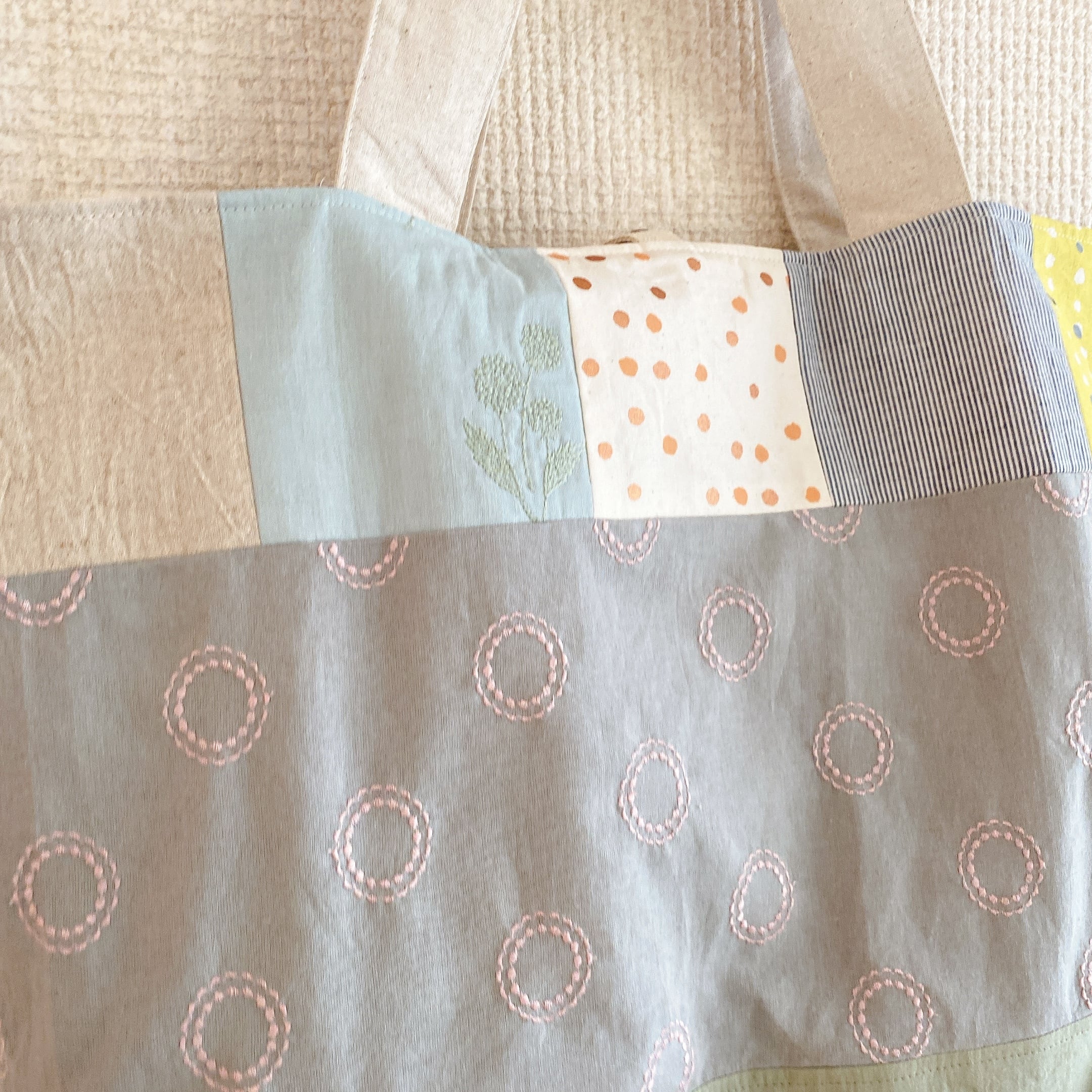大容量!つぎはぎ布バック(サークル刺繍mix)