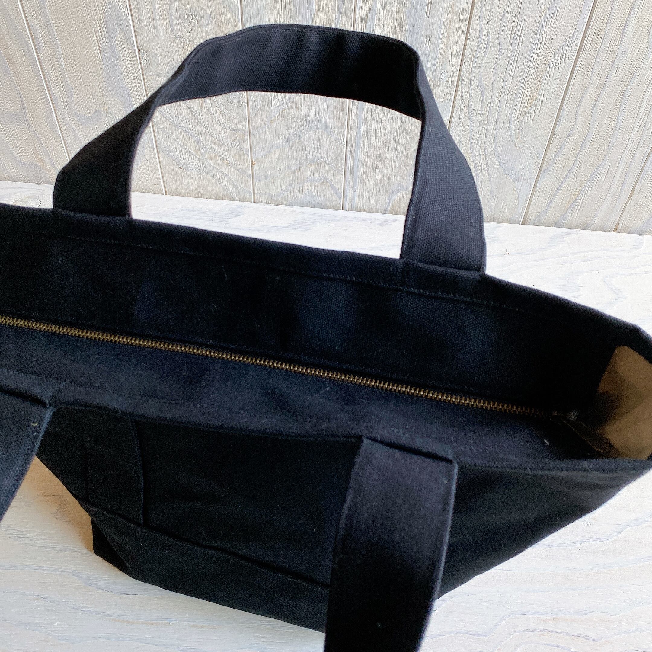 【オーダーのお品】8号帆布のしっかりトートバック大・ファスナータイプ(クロ)