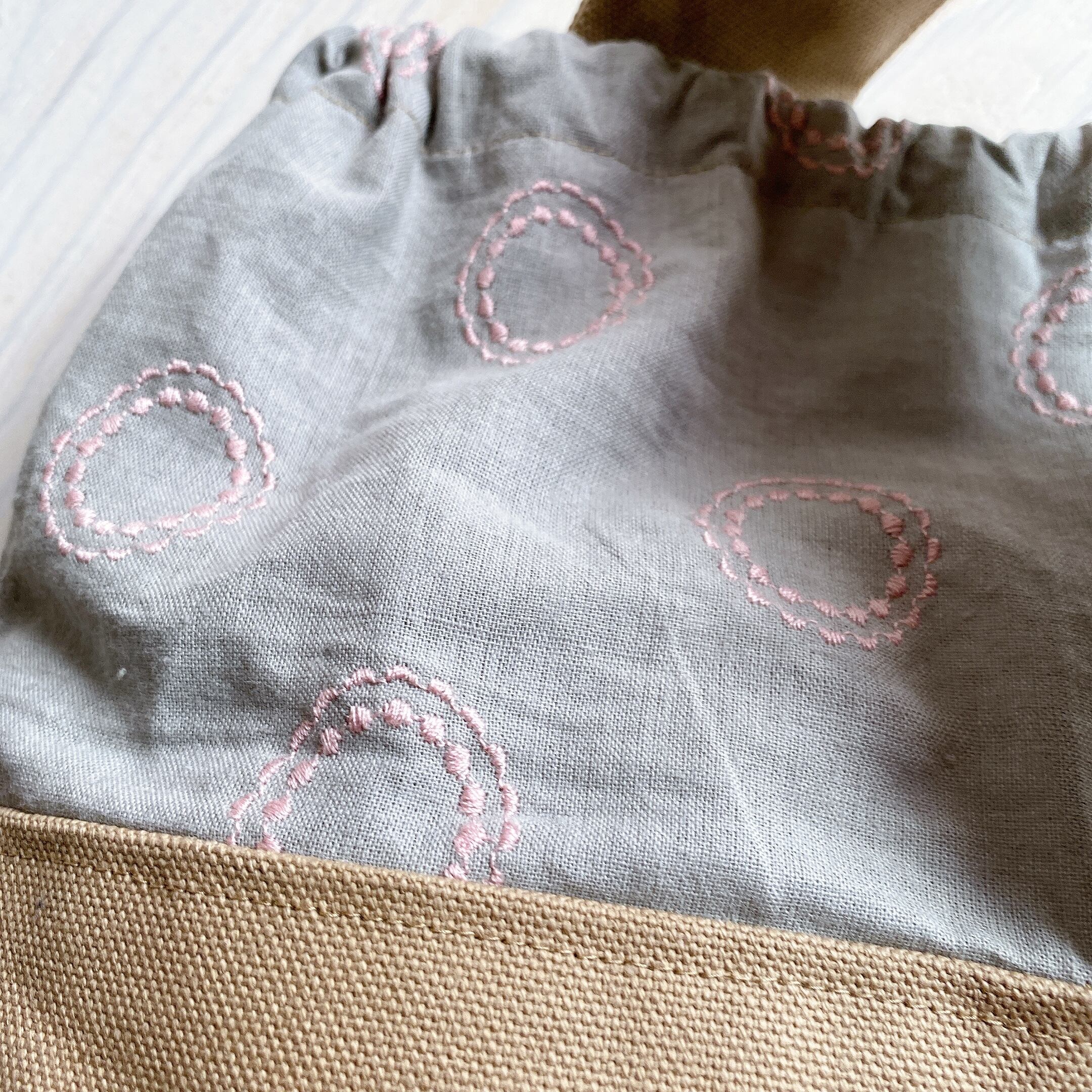 巾着付きのワンハンドルバック(サブレ×サークル刺繍)