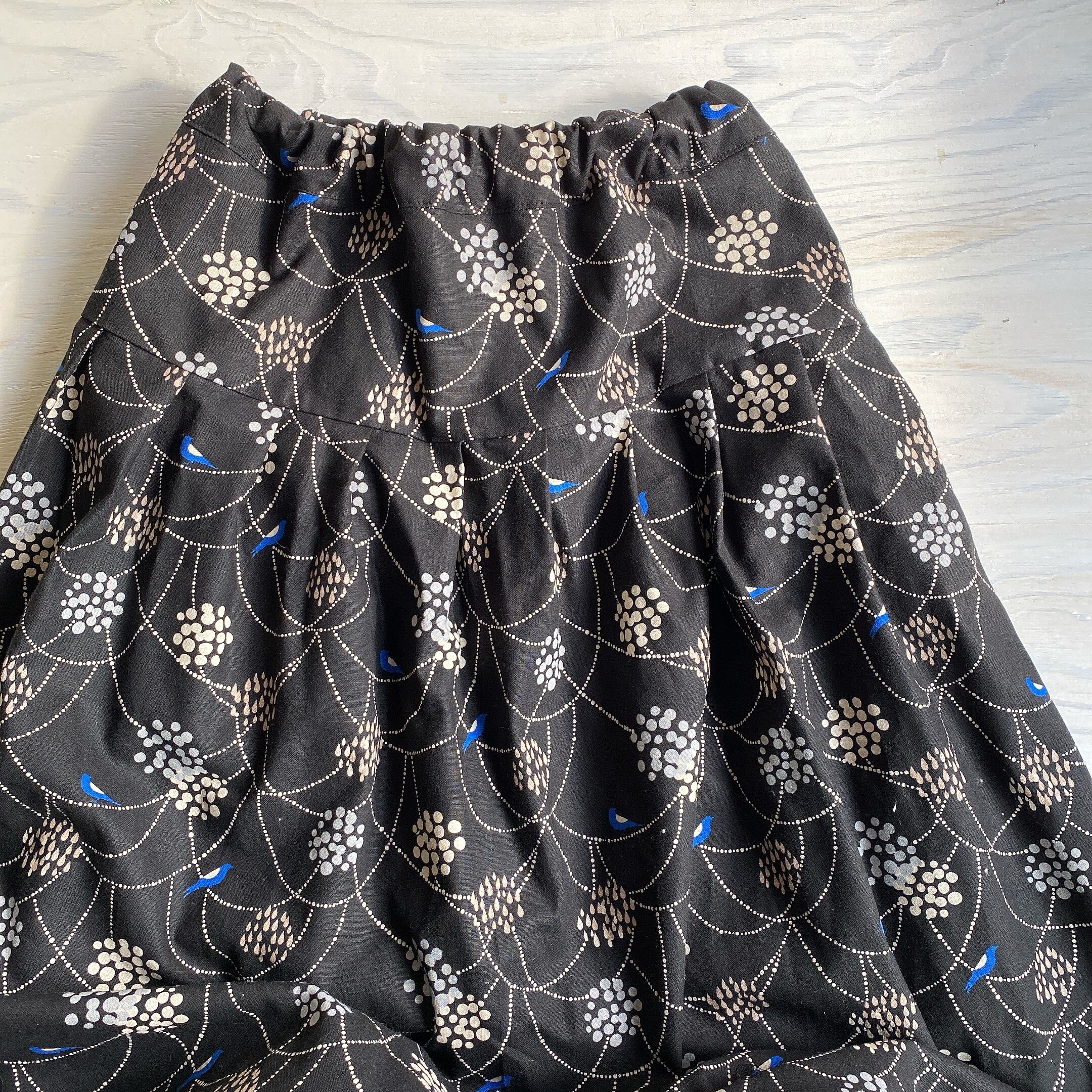マキシ丈のタックスカート(丈88cm)青い鳥