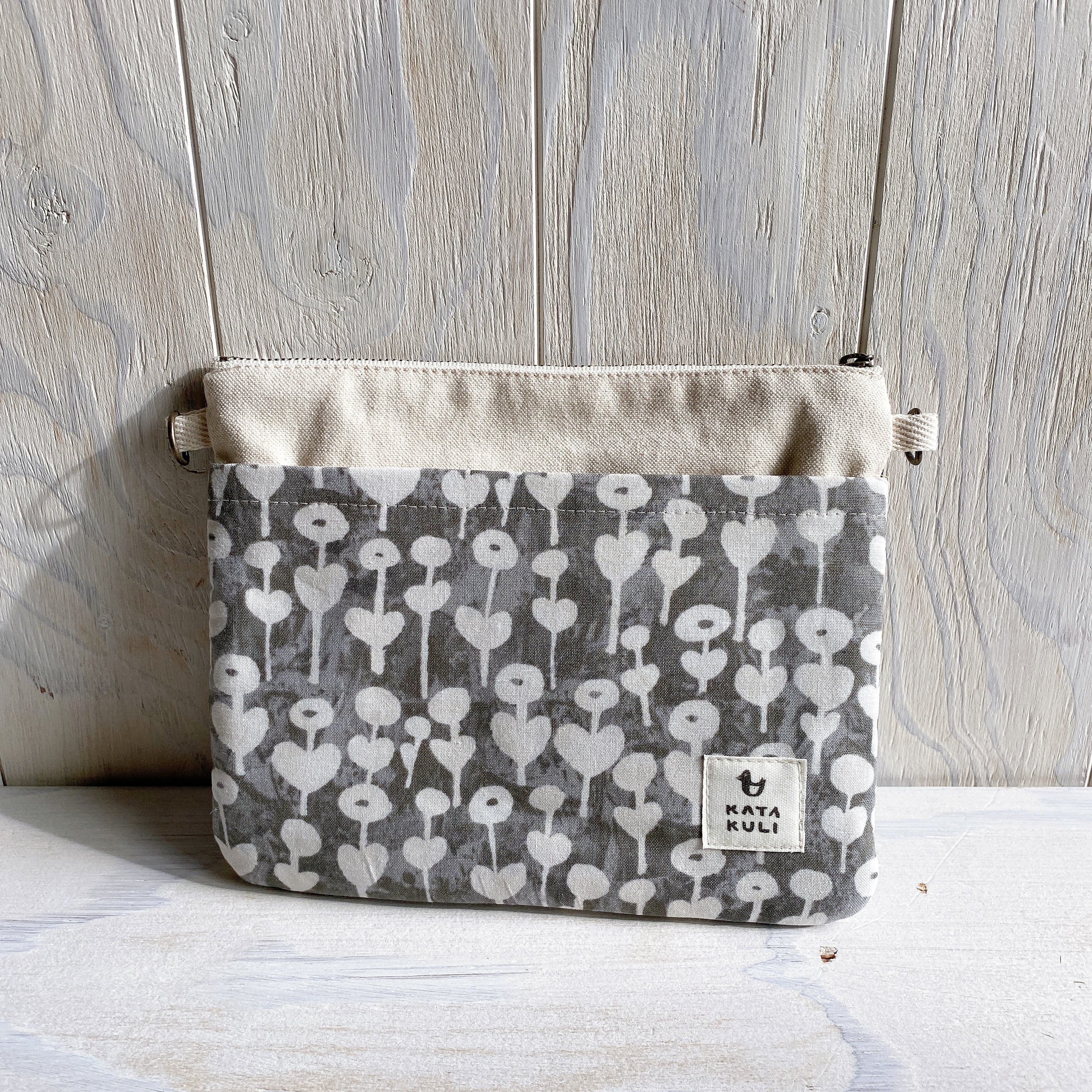 【オーダーのお品】3ファスナーフラットポーチ(ネコ)マスク入れにも♪ポシェットにも♪