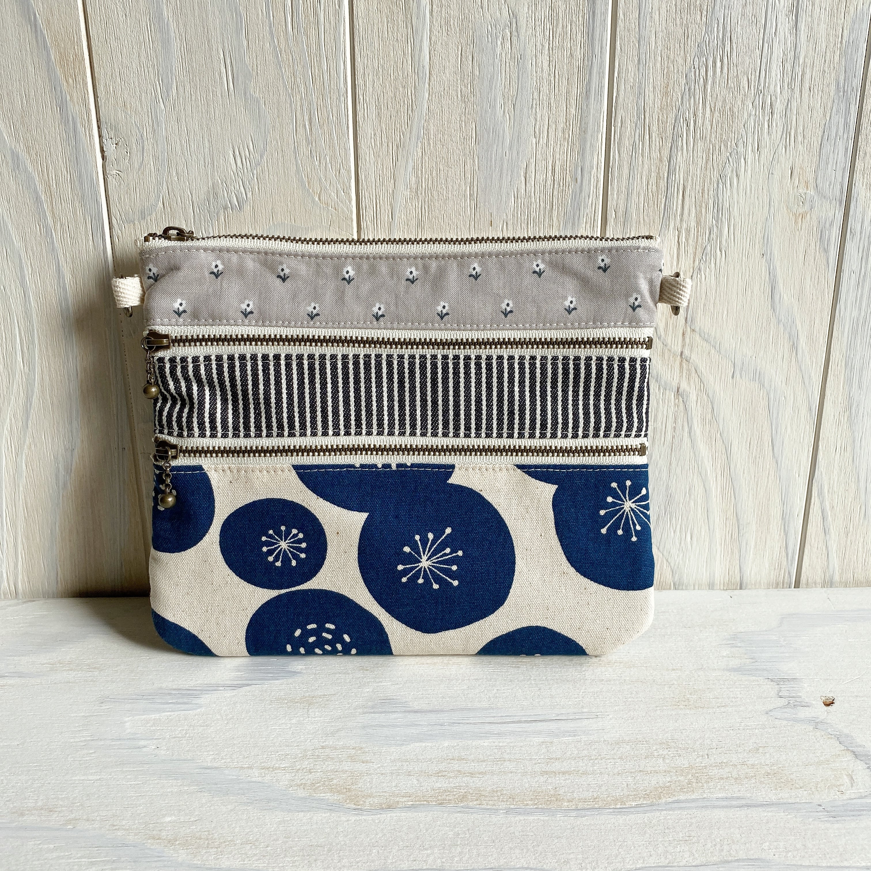 サコッシュにもなる3ファスナーフラットポーチ(おはぎ)