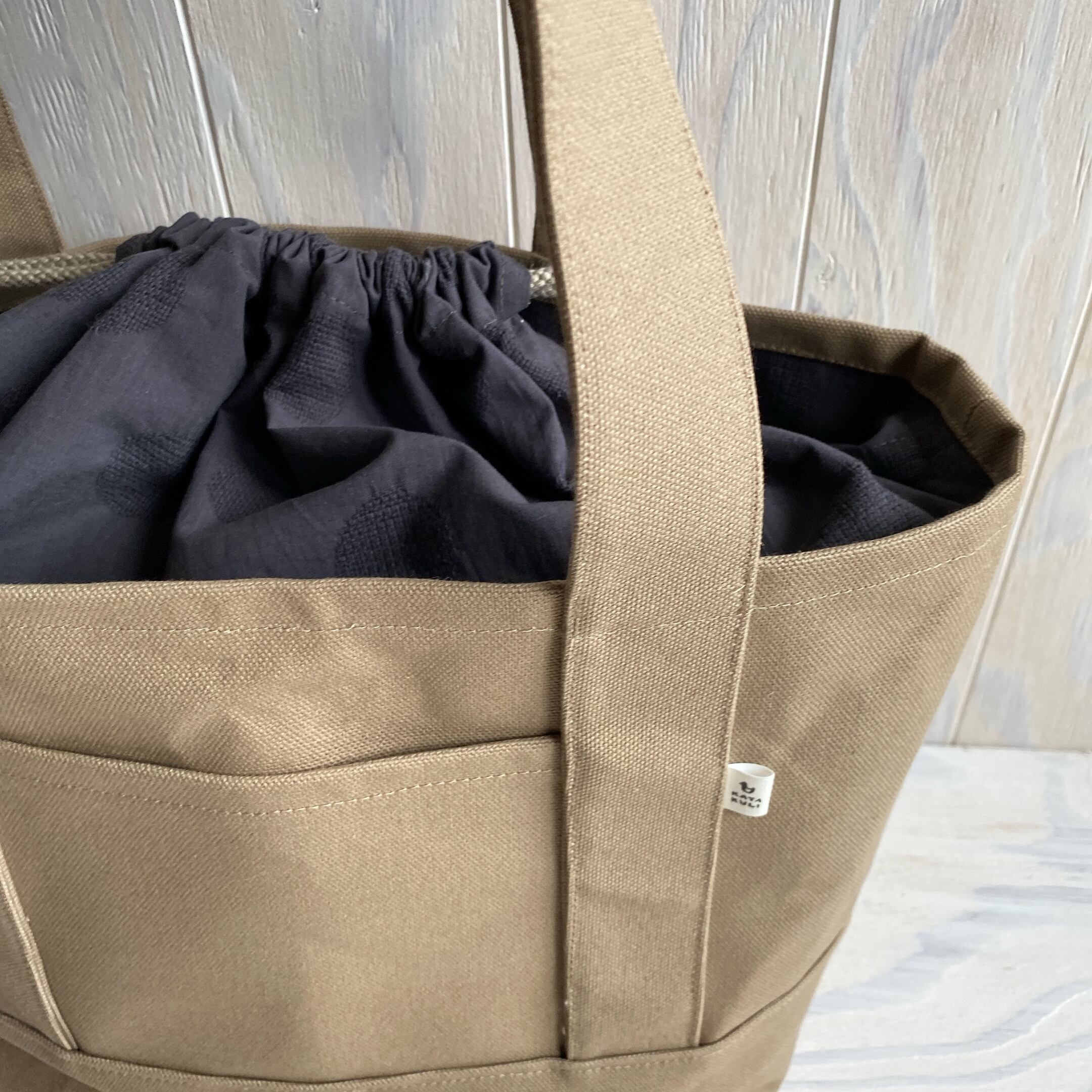 8号帆布の巾着付きトートバック大(ベージュ)
