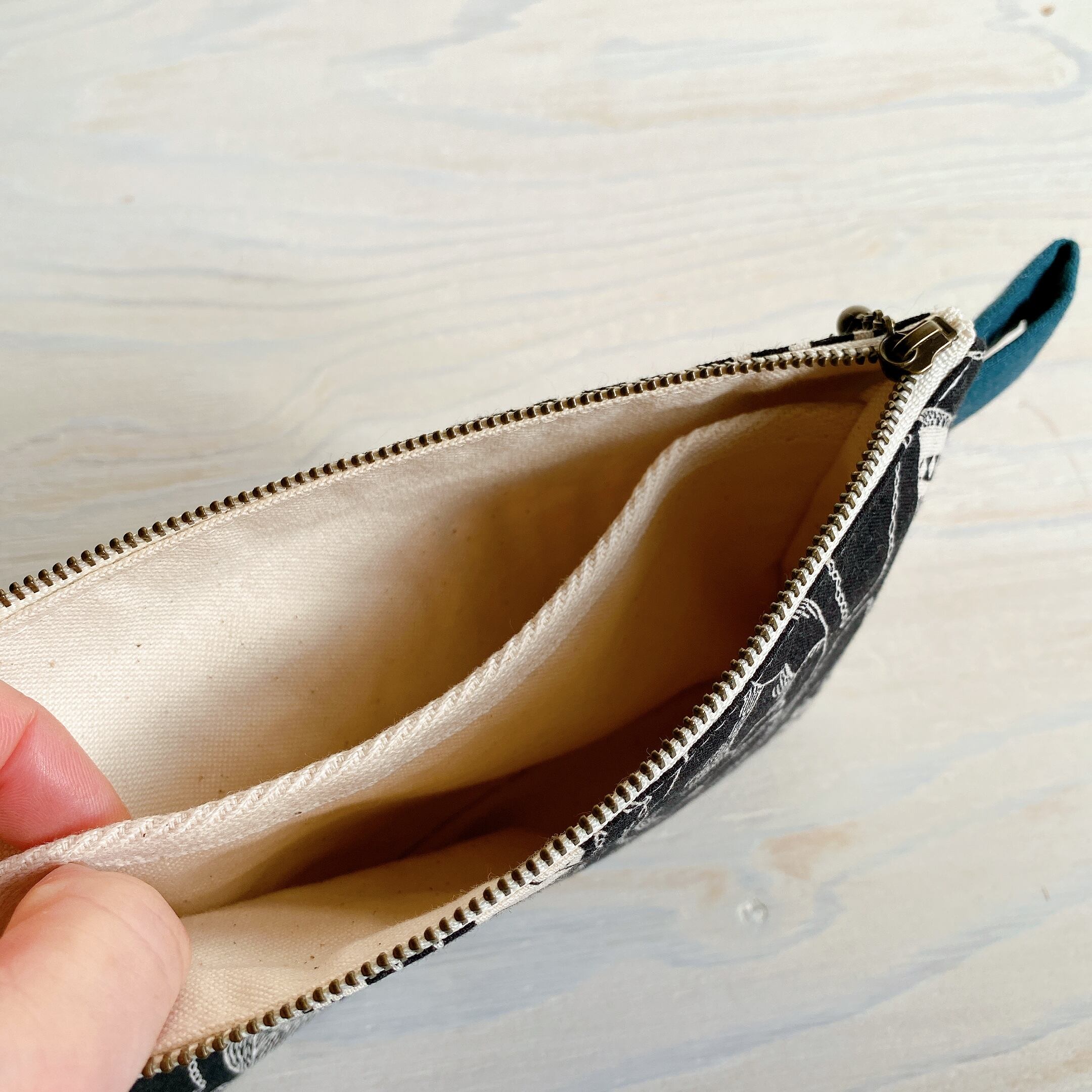 内側に仕切りのあるポーチを作りました。