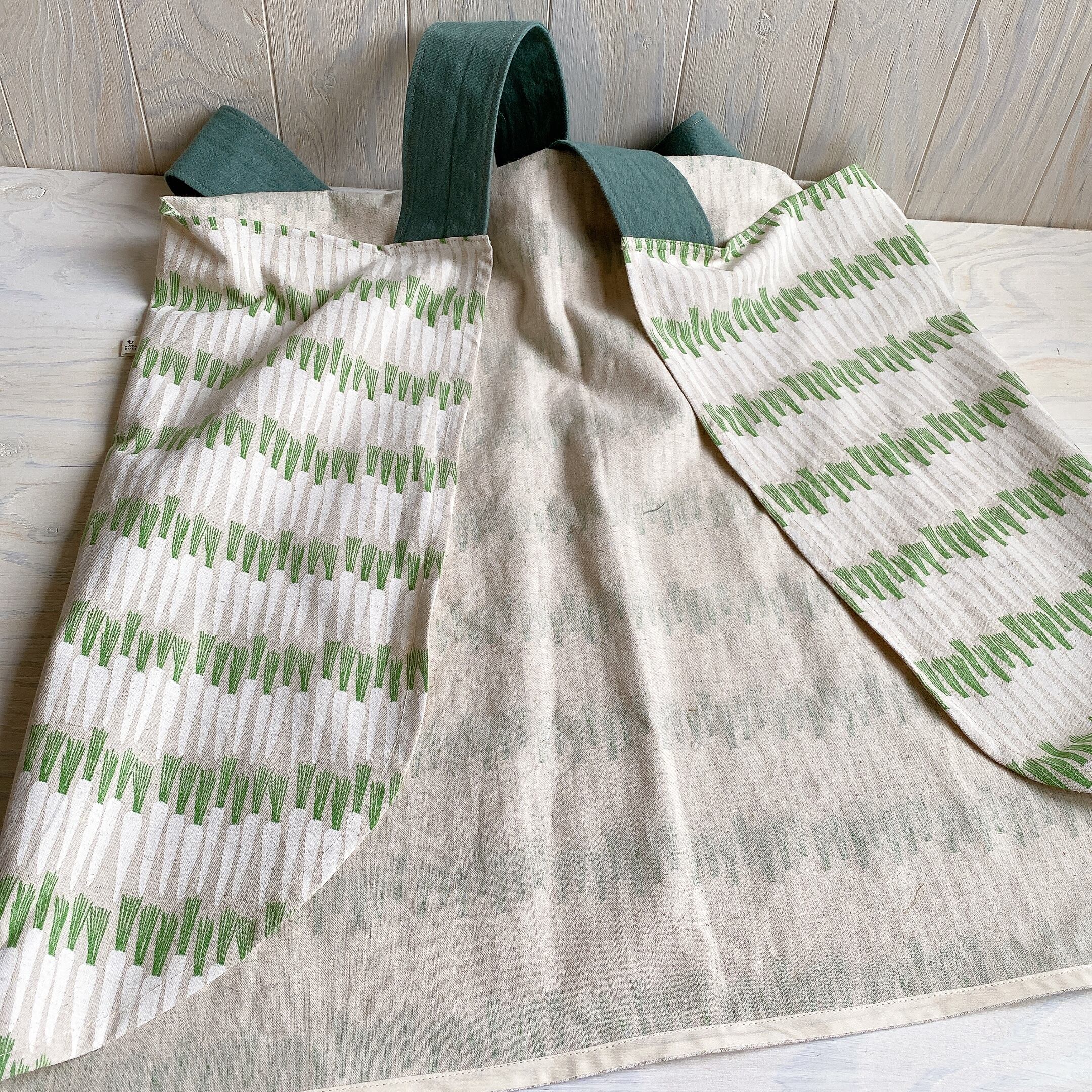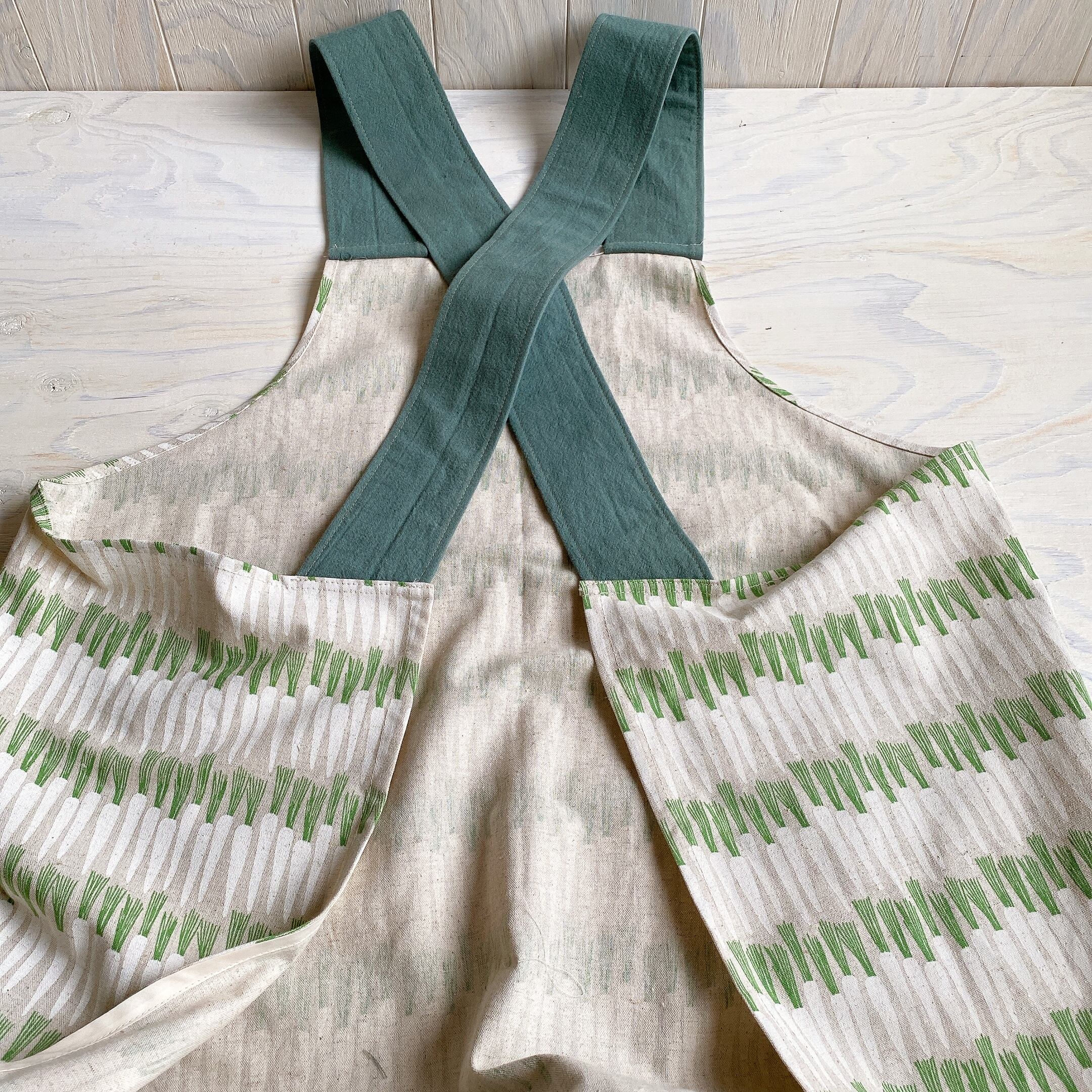 エプロン本体の生地は、綿麻キャンバス生地です。
