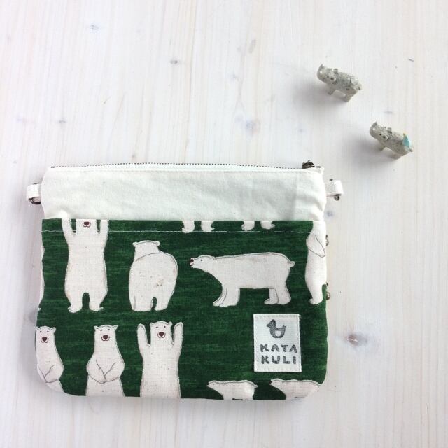 ポシェットにもなります*3ファスナーポーチ(リーフ・グリーン)