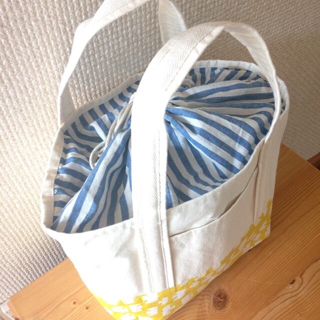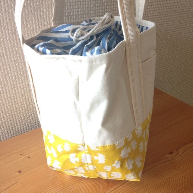 巾着付きトートバック*タンブラーベルト付き♪(キイロつばめ)