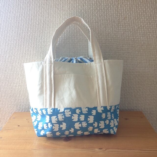 巾着付きトートバック*タンブラーベルト付き♪(アオつばめ)