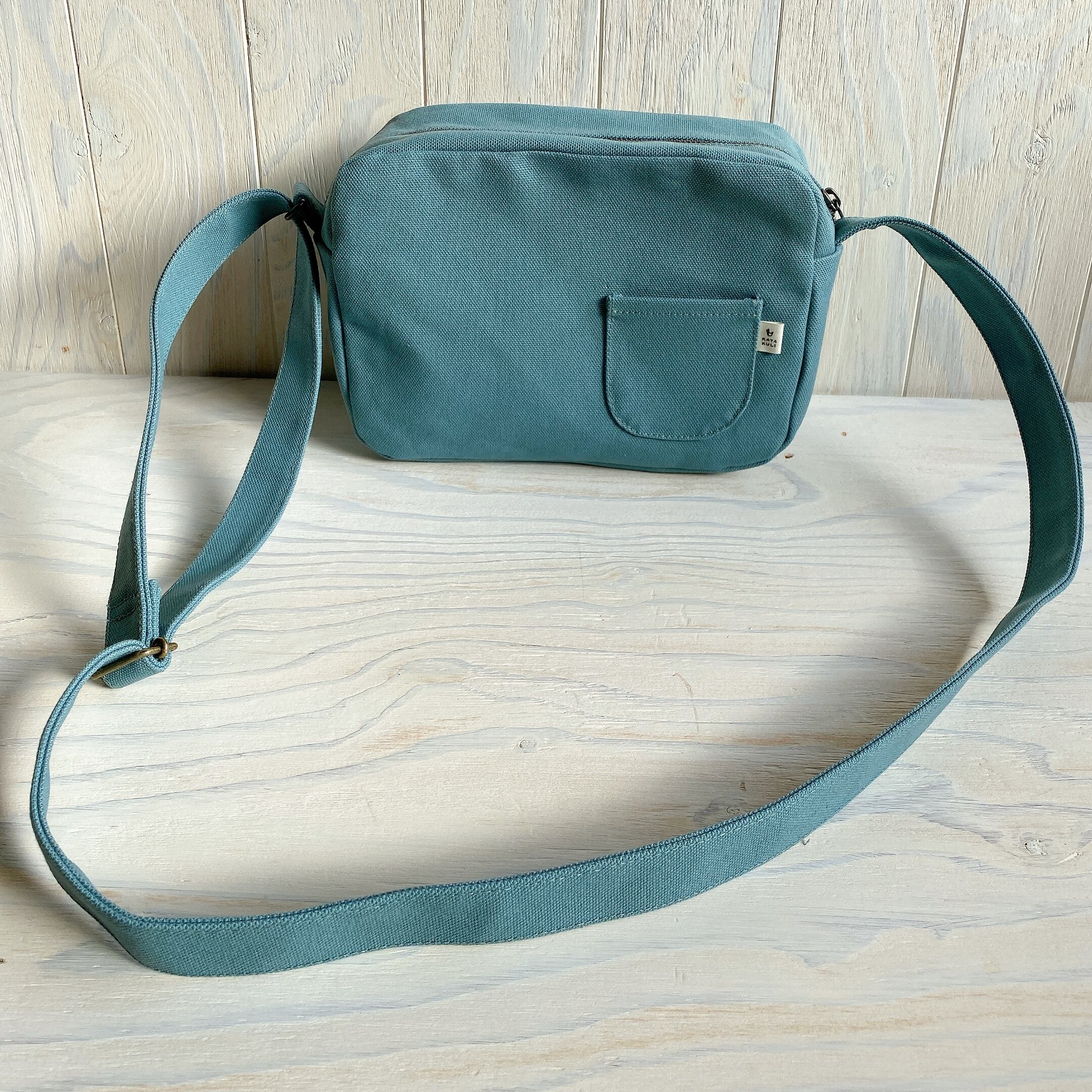 【オーダーのお品】8号帆布のショルダーバック(アイスグレー・マチ10cm)