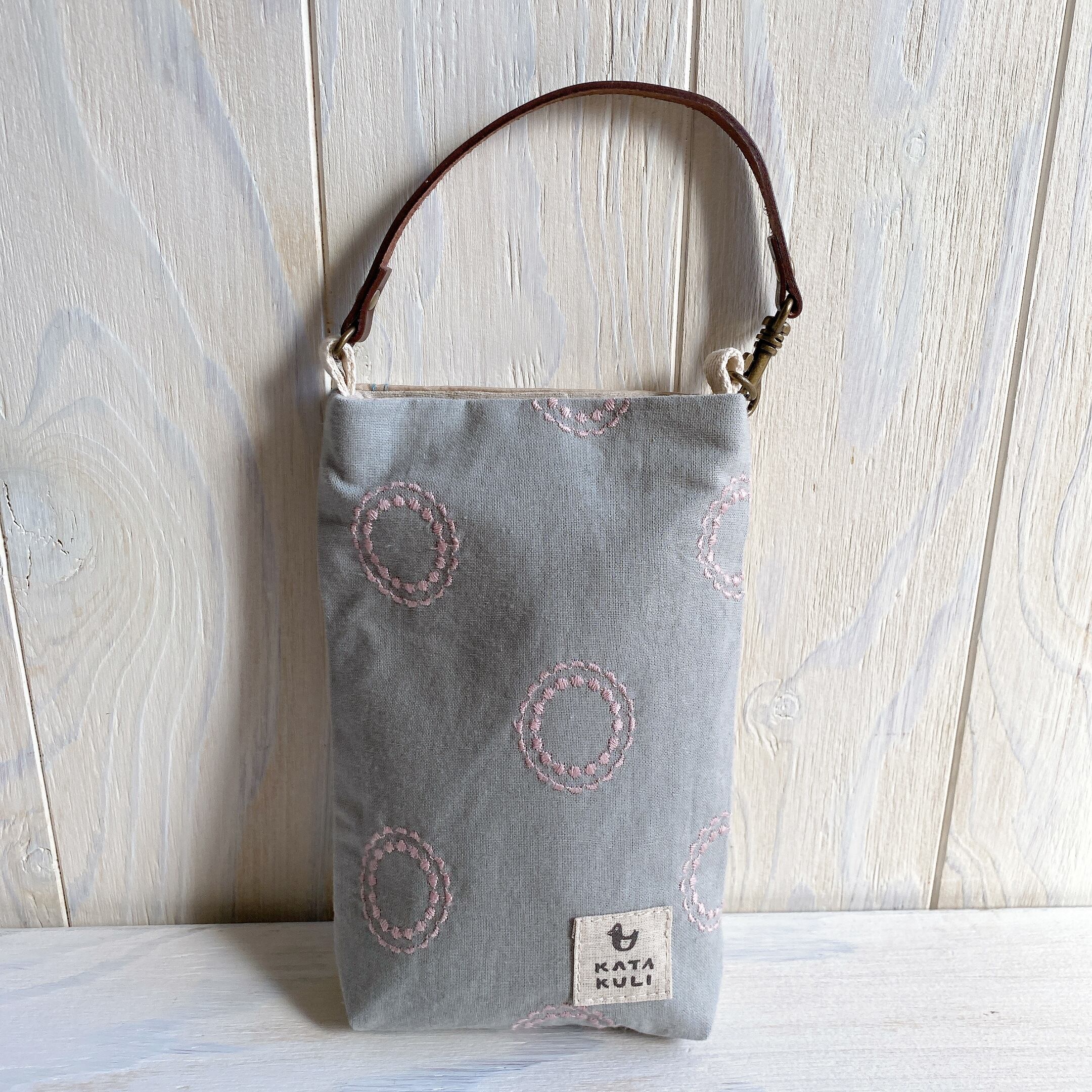 スマホポーチ(刺繍ネコベージュ)