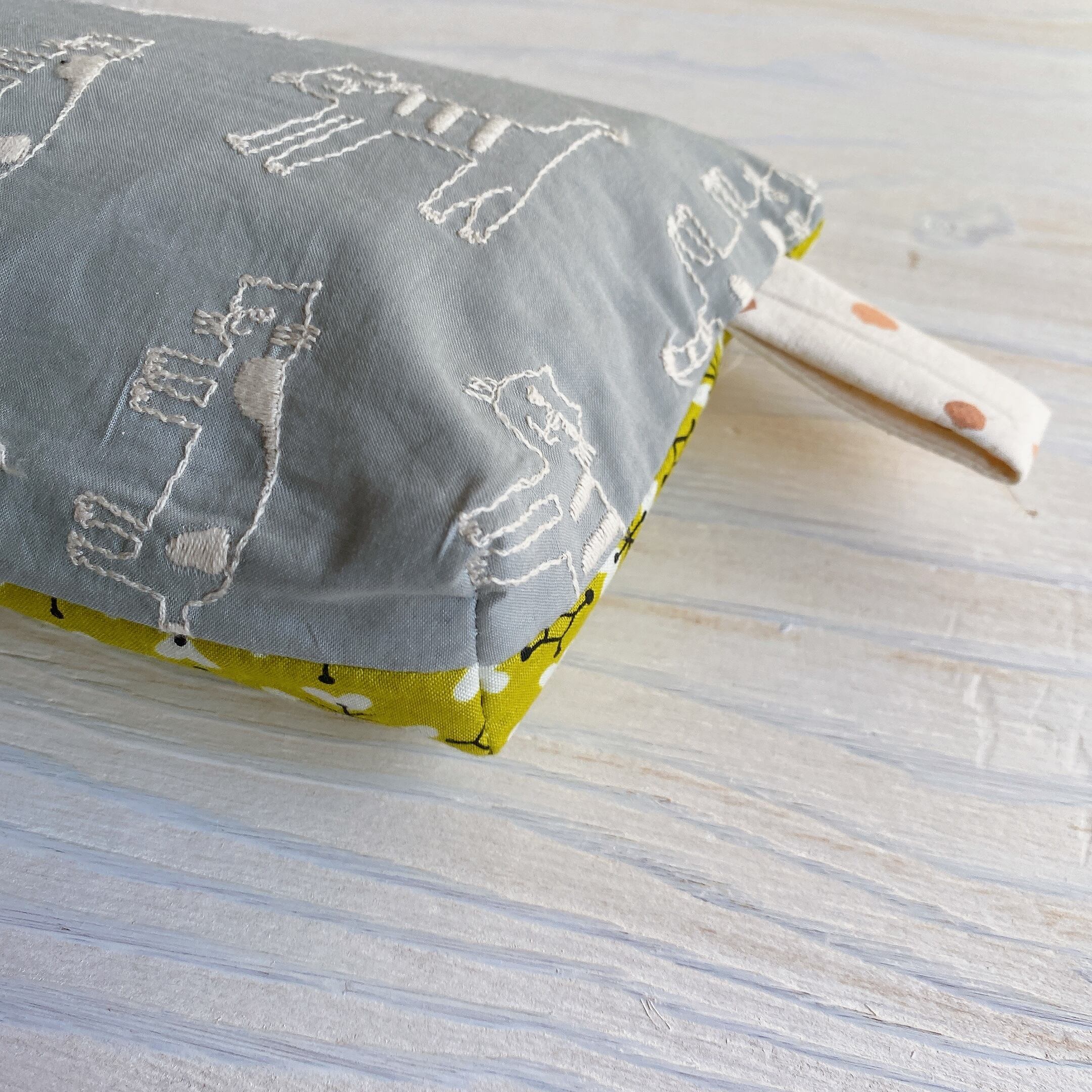 仕切りのあるポーチ(ネコ刺繡グレー)