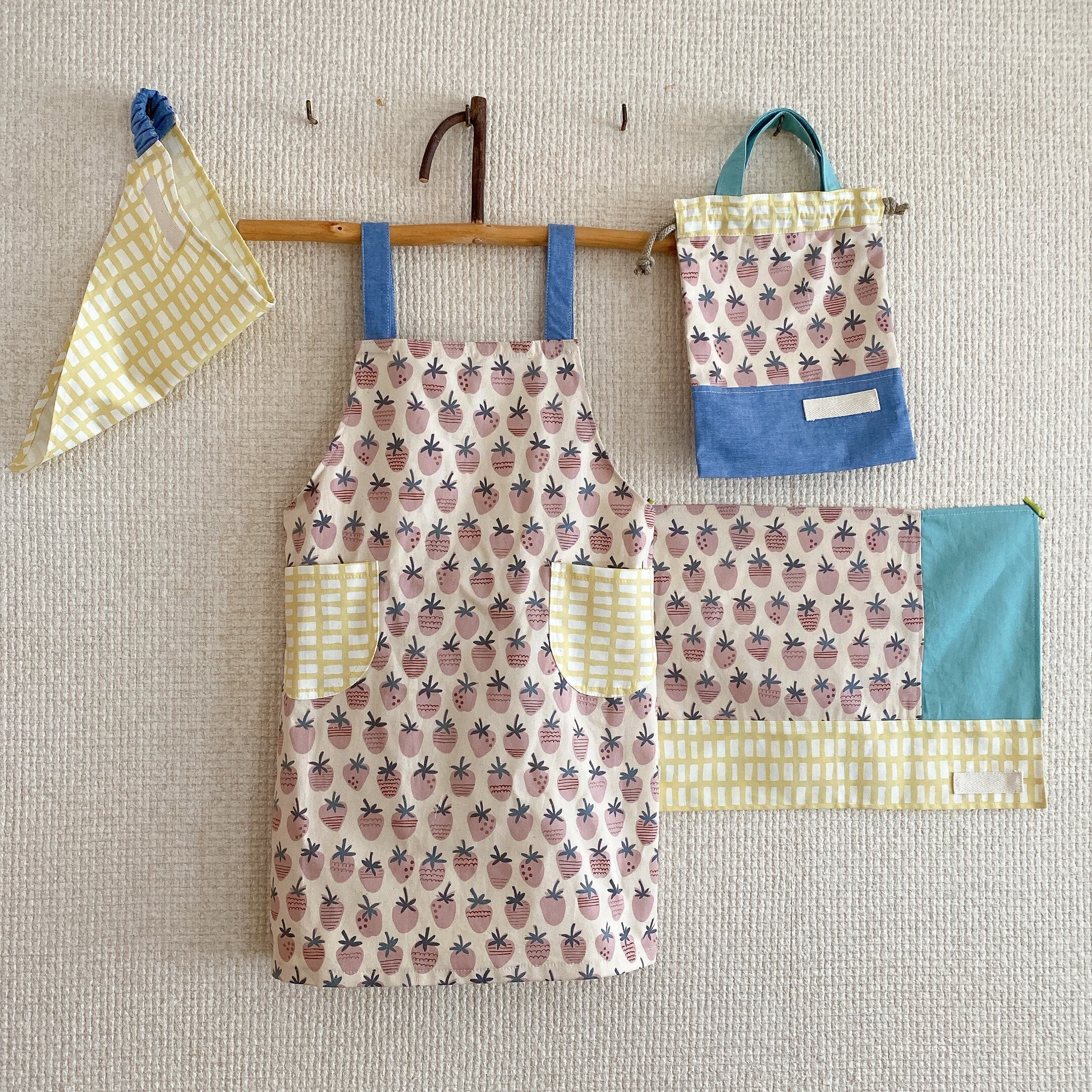 低学年サイズ♪エプロン4点セット(サイズ130)いちご