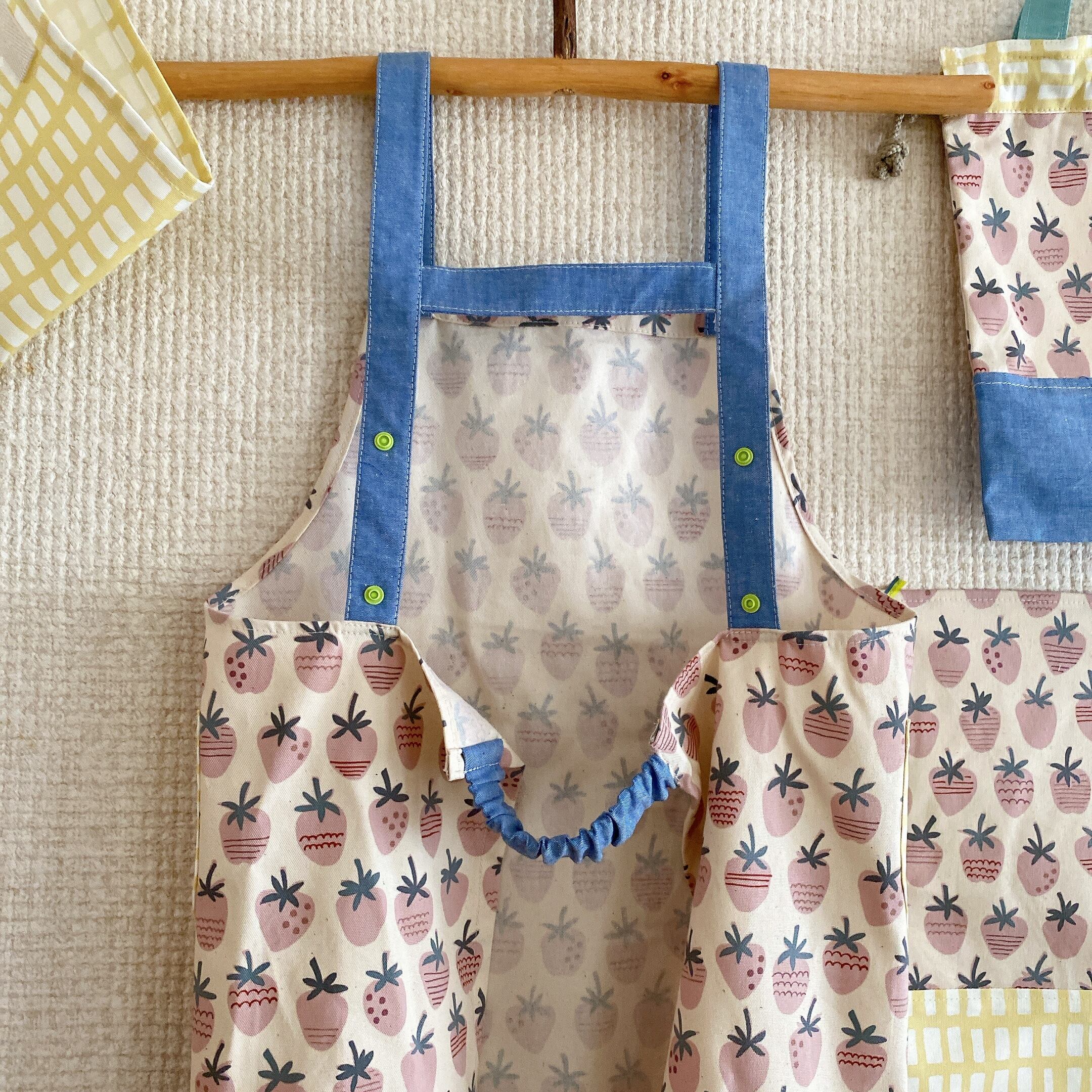 低学年さんにちょうど良いサイズのエプロンセットです。