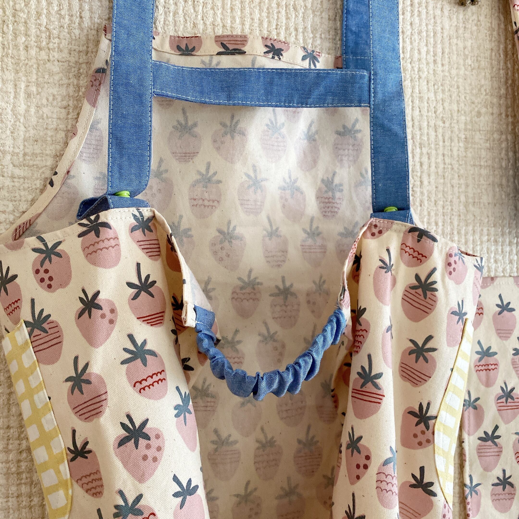 エプロンの後ろはシュシュのようにゴムを入れています。