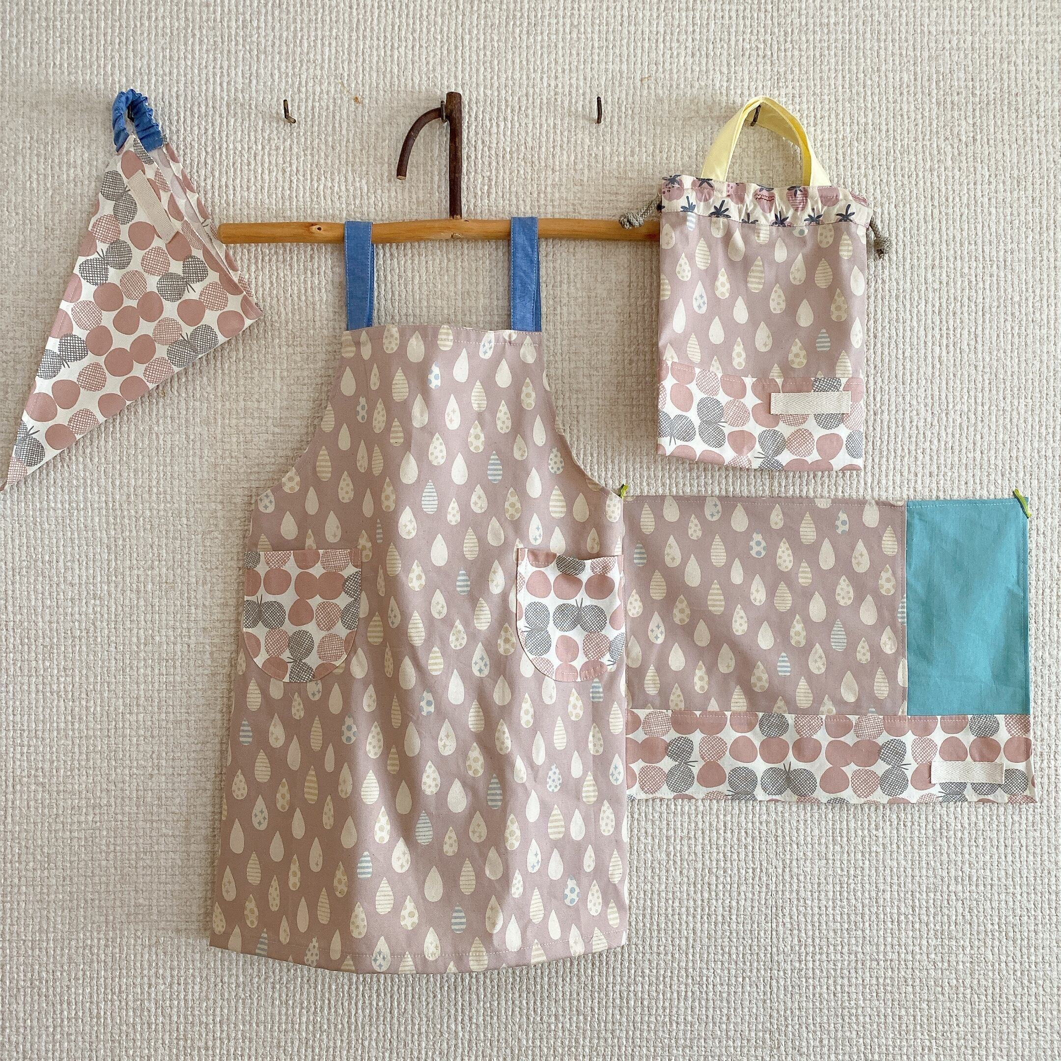 低学年サイズ♪エプロン4点セット(サイズ130)しずく