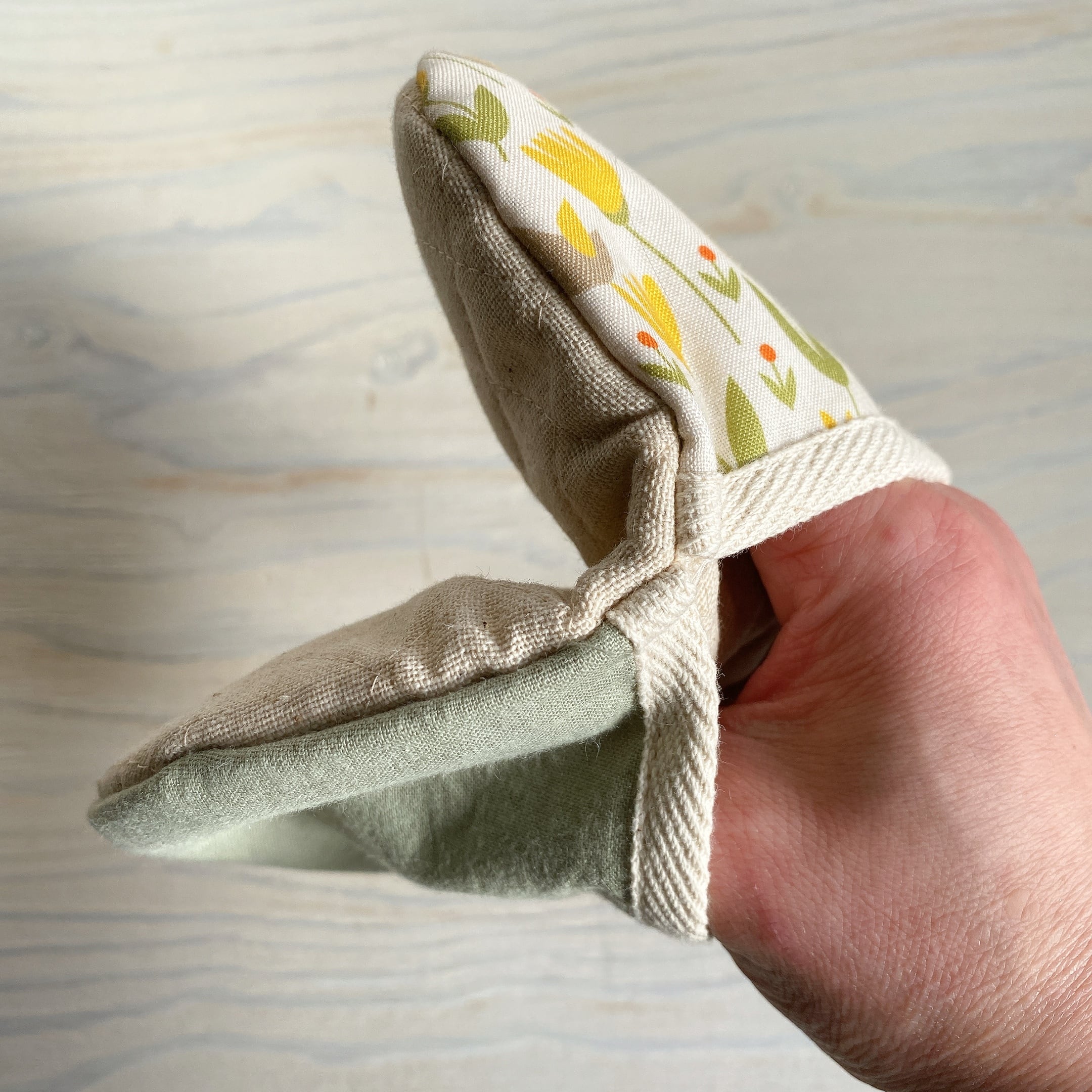 なべつかみ(キイロお花×ミドリ)