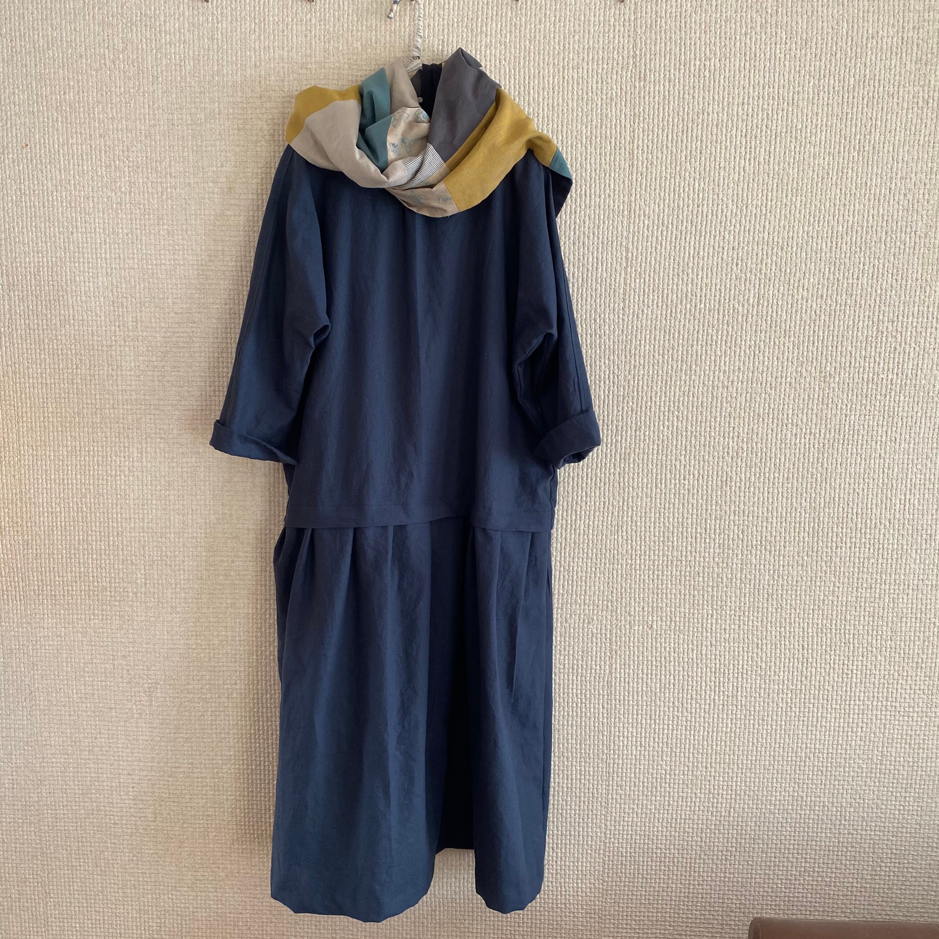 ドルマンスリーブのワンピース*スモーキーネイビー