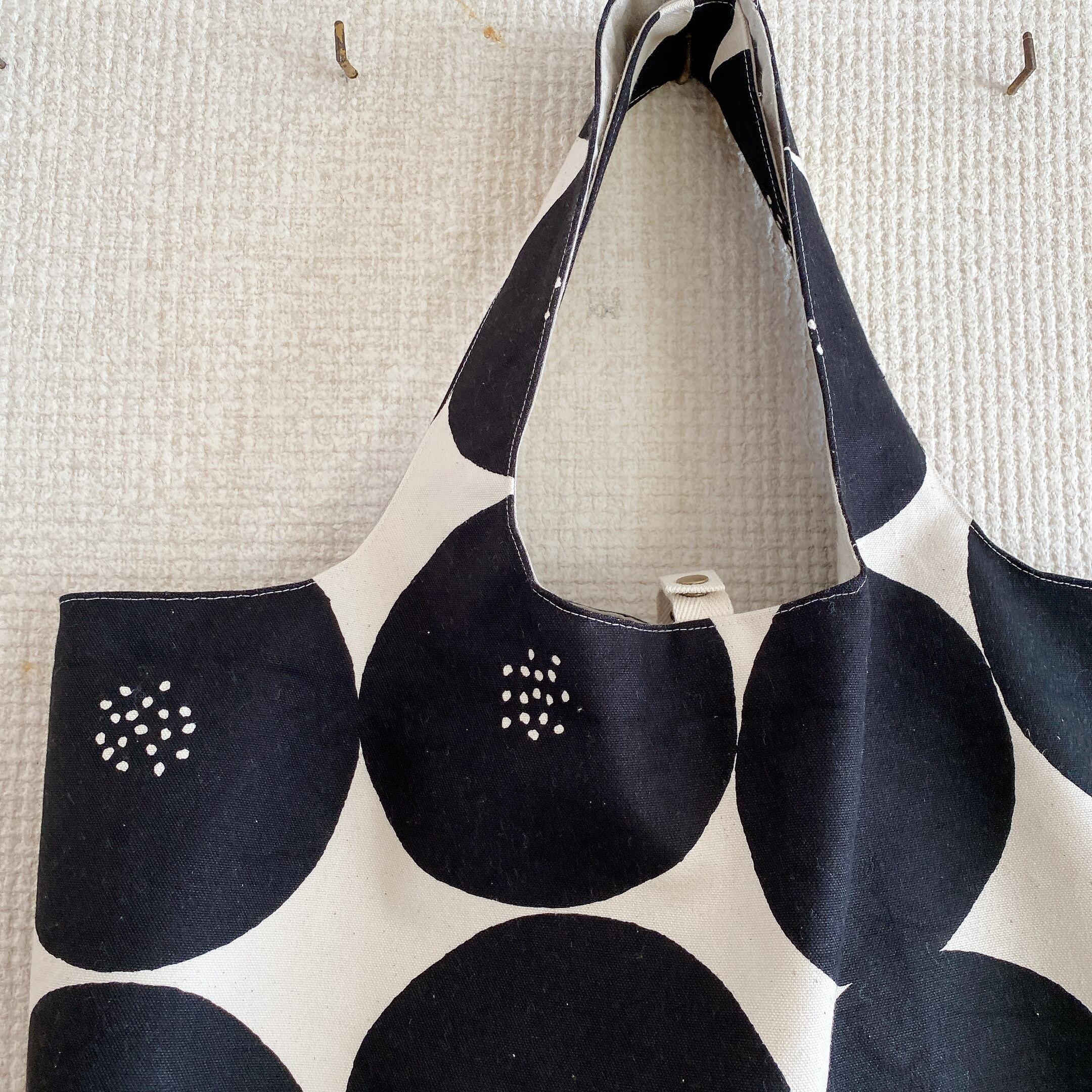 袋部分と持ち手部分が一続きになっているので丈夫なつくりです。