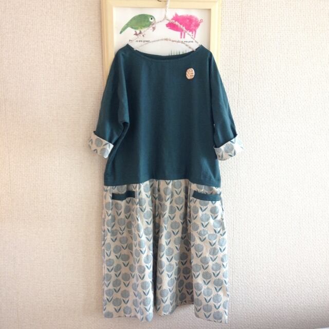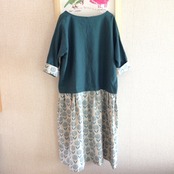 ドルマンスリーブのワンピース*グリーン×ブルーフラワー