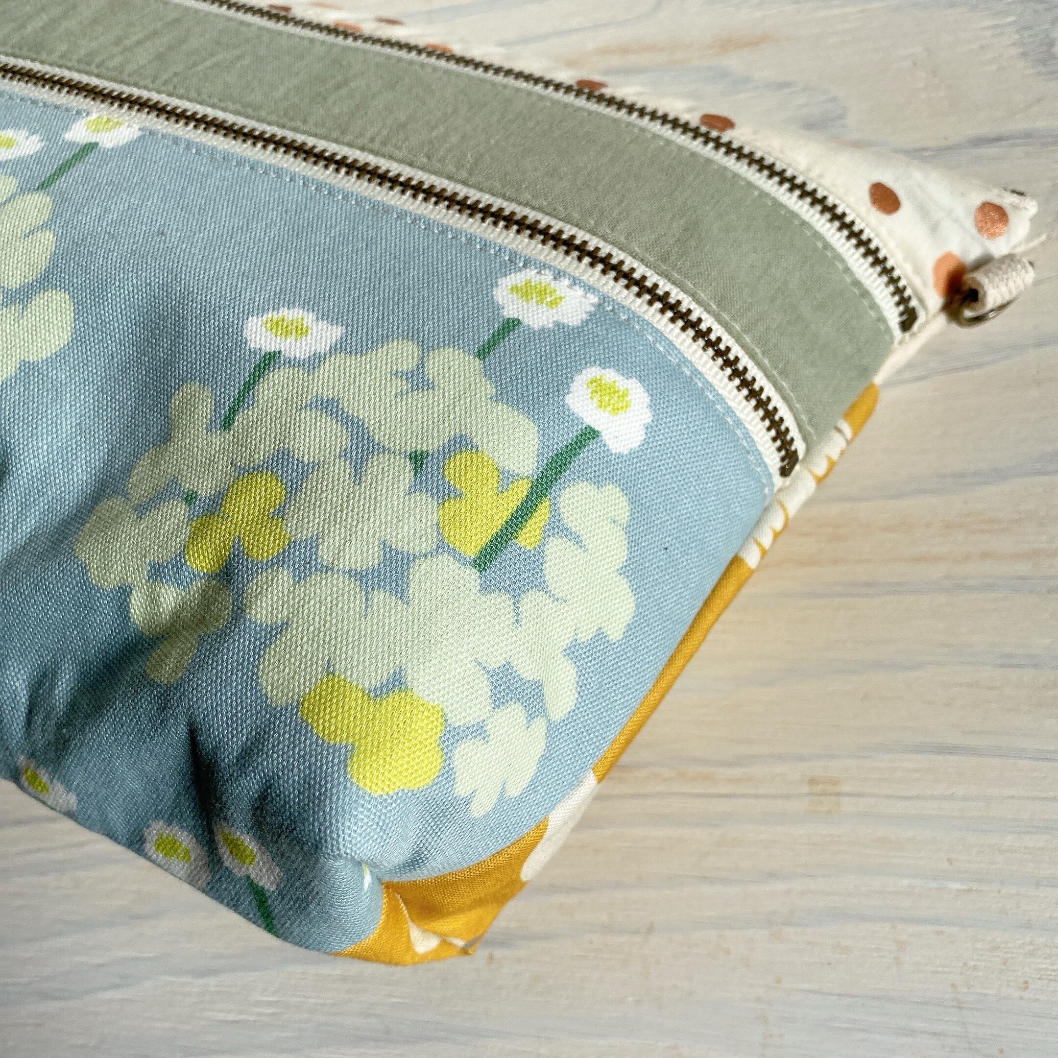 マチ付き3ファスナーポーチ*ポシェットにも♪(シロツメクサミズイロ)