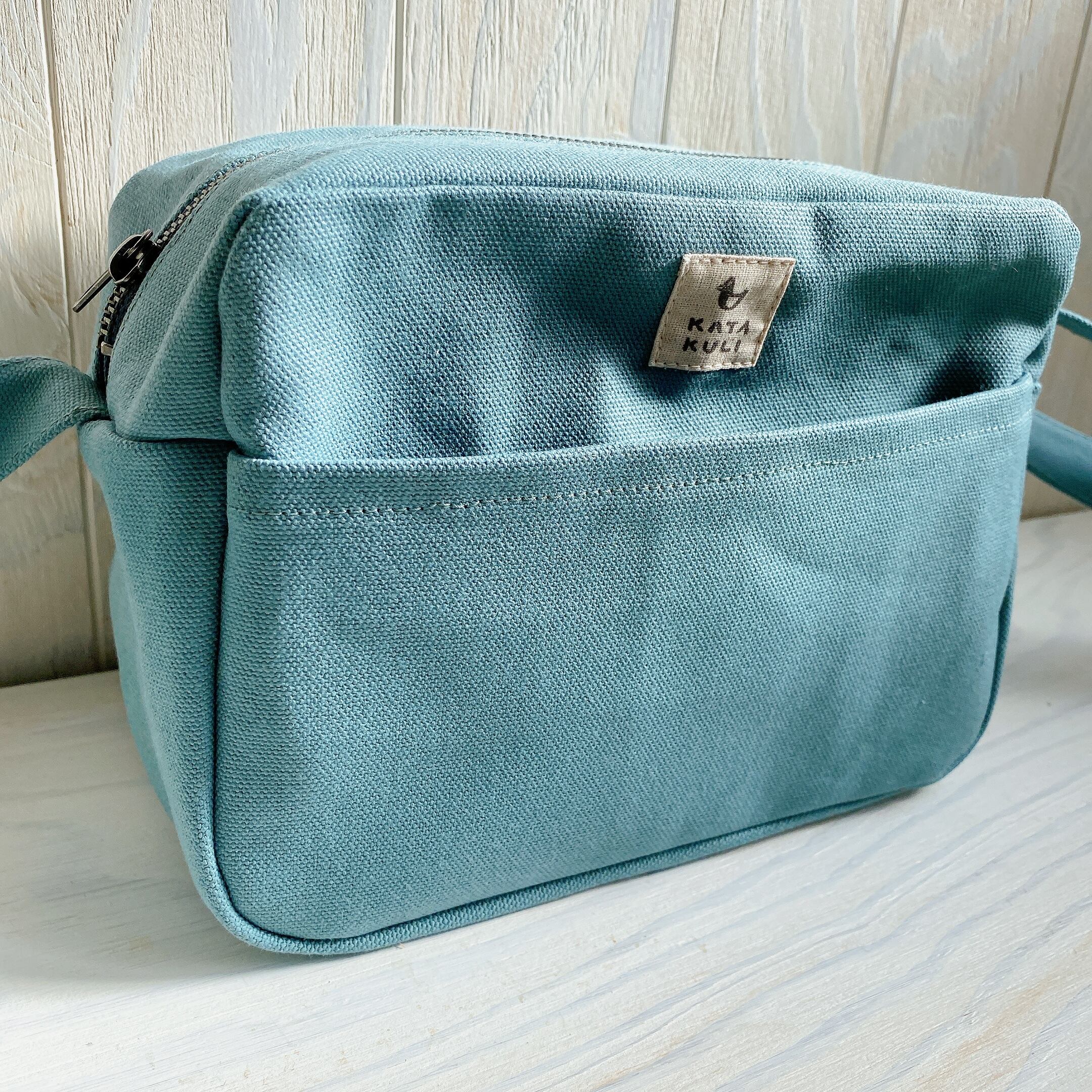 【オーダーのお品】8号帆布のショルダーバック(アイスグレー・マチ13cm)