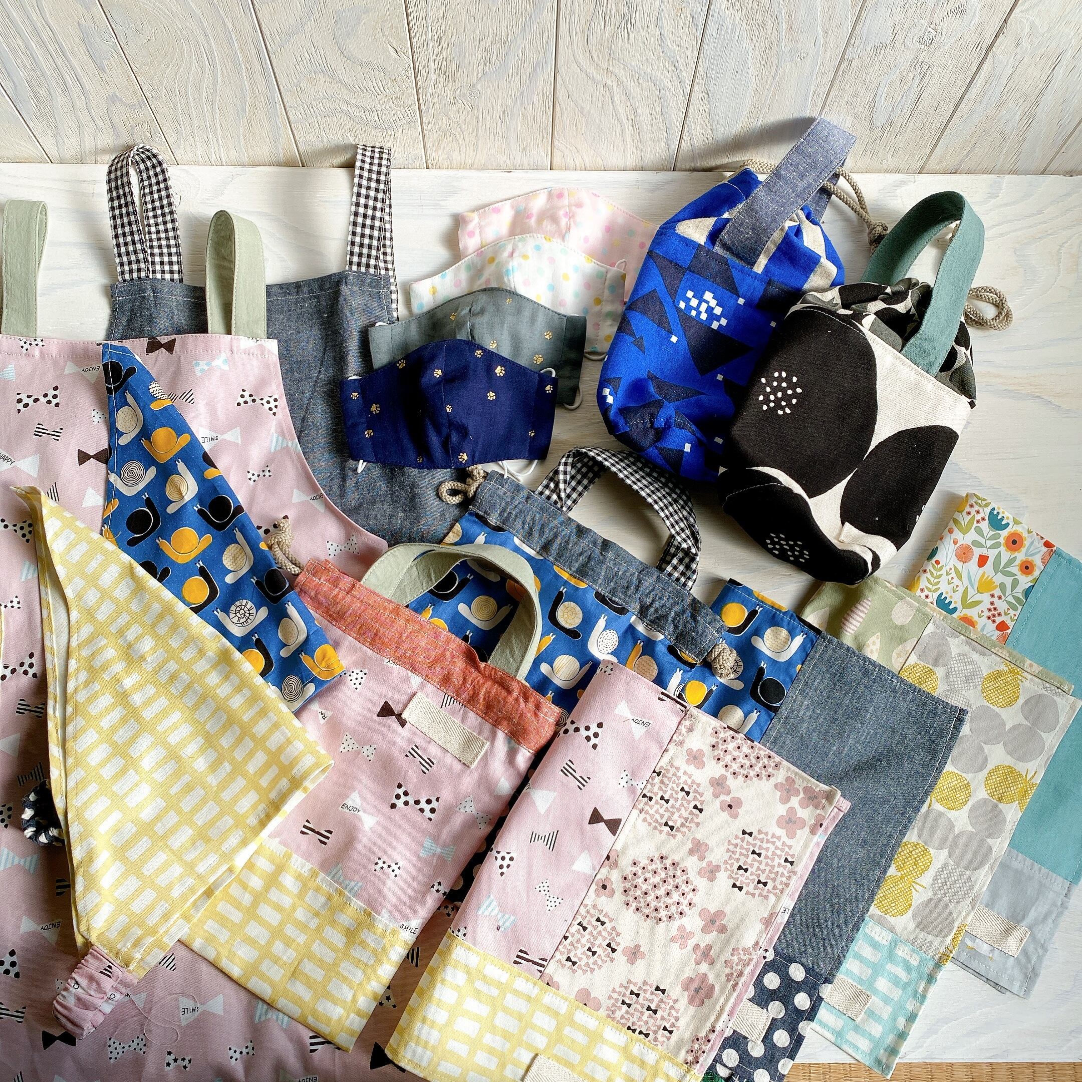 【オーダーのお品】エプロンセット×2 水筒バック×2 ランチマット×2 マスク×4