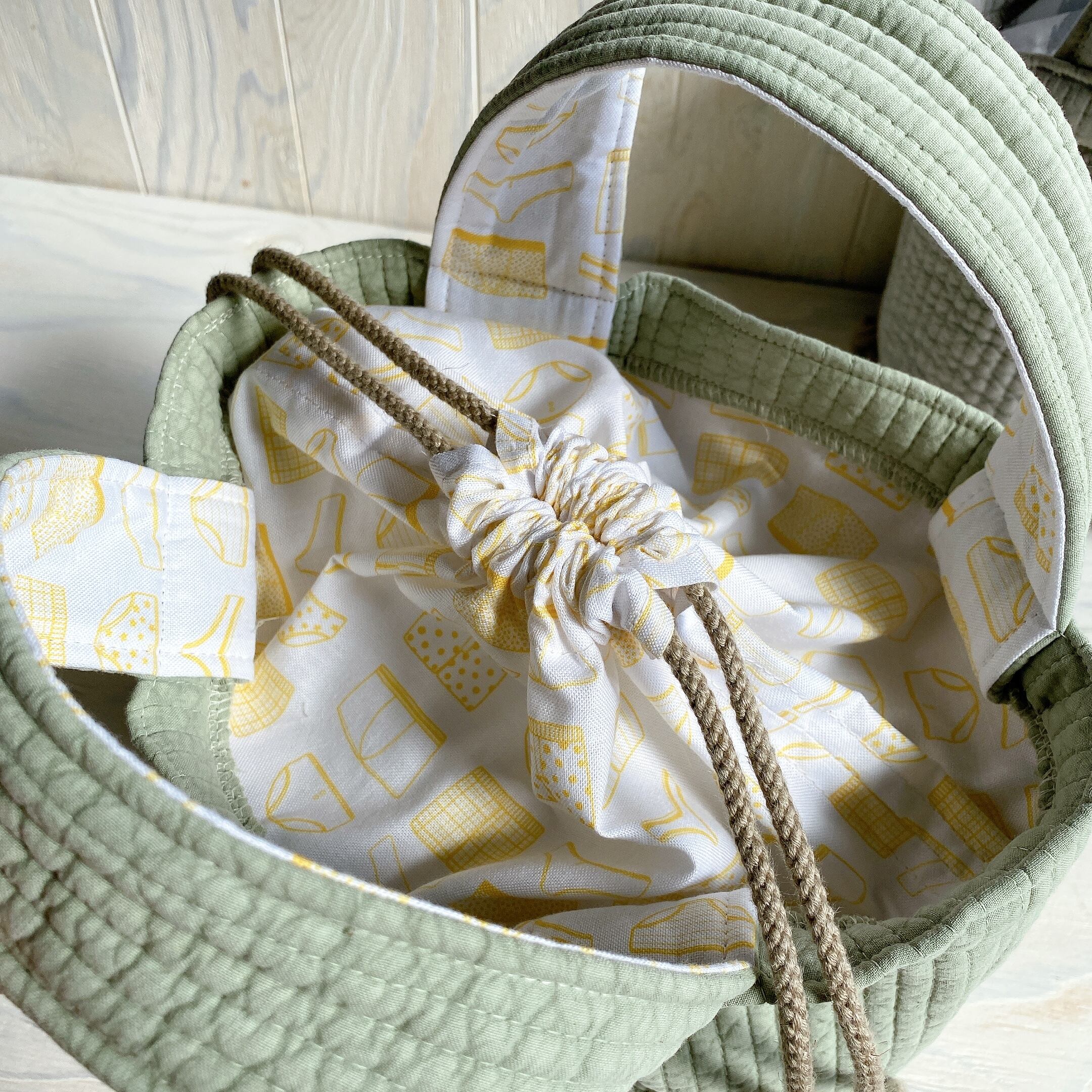 お弁当を入れたり、ちょっとそこまでの買物やお散歩にぴったりなトートバックです。