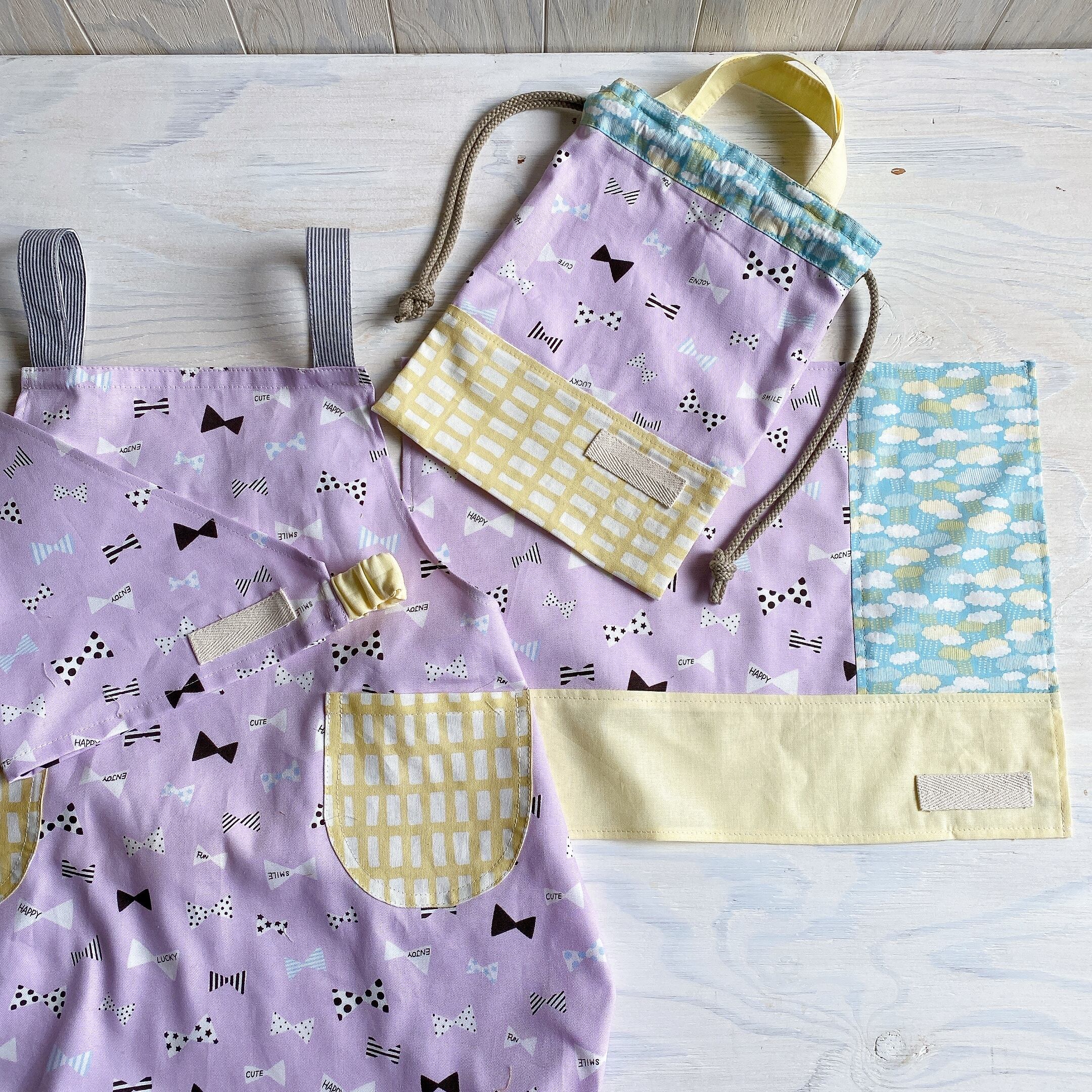 低学年さんにちょうど良いサイズのエプロンセットです。