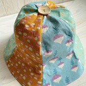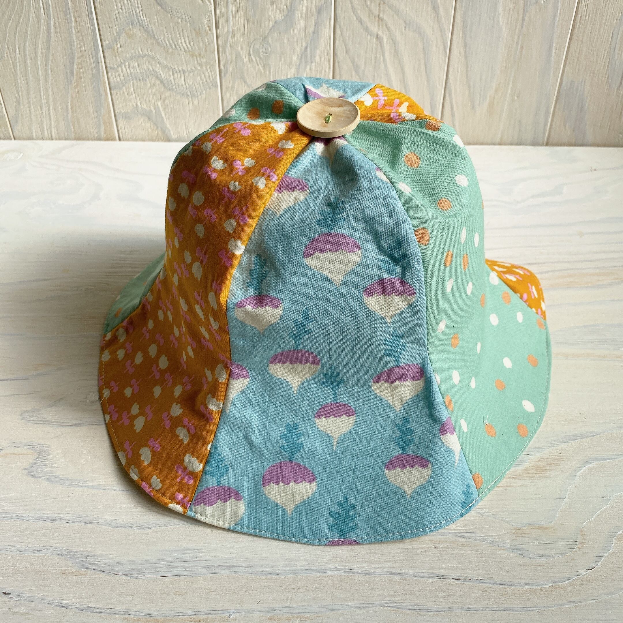 相性の良い3色の生地を組み合わせてチューリップハットにしました。