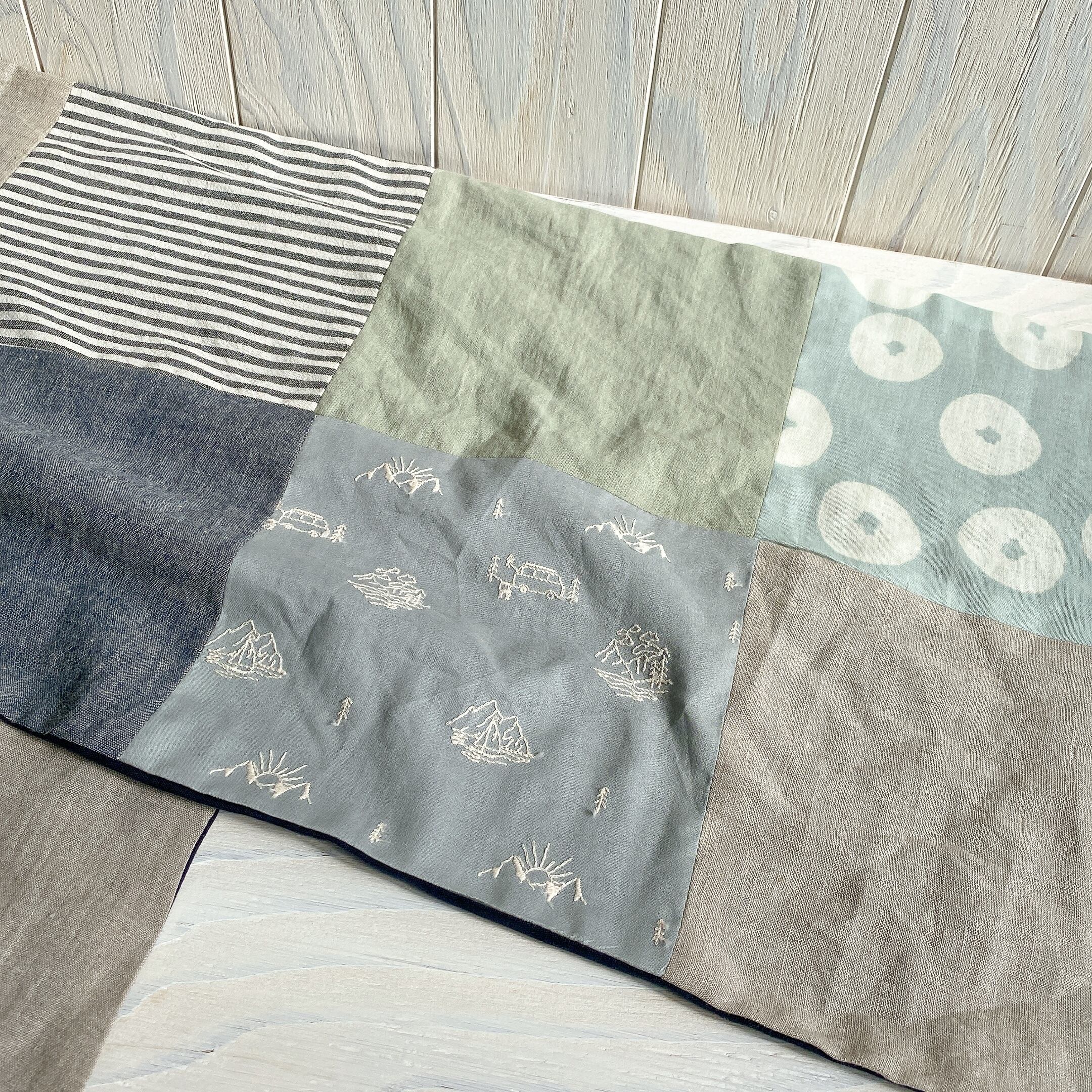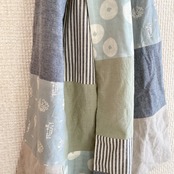 パッチワークの大判ストール(刺繍キャンプグレー)