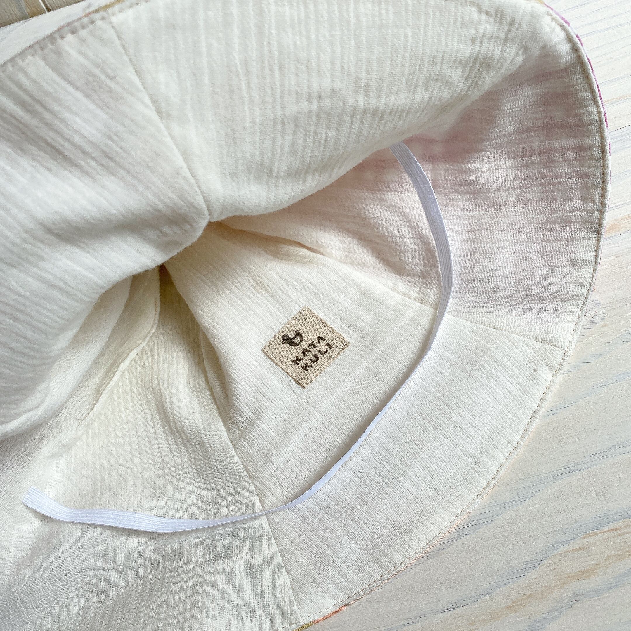 相性の良い3色の生地を組み合わせてチューリップハットにしました。