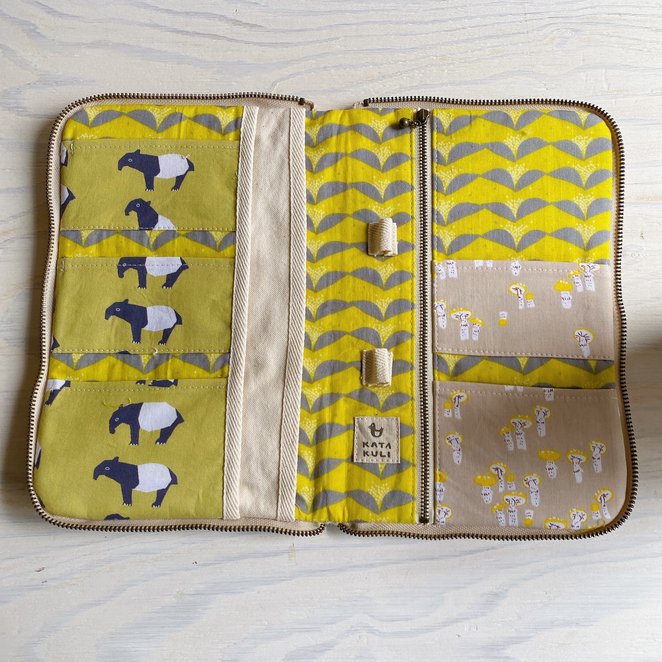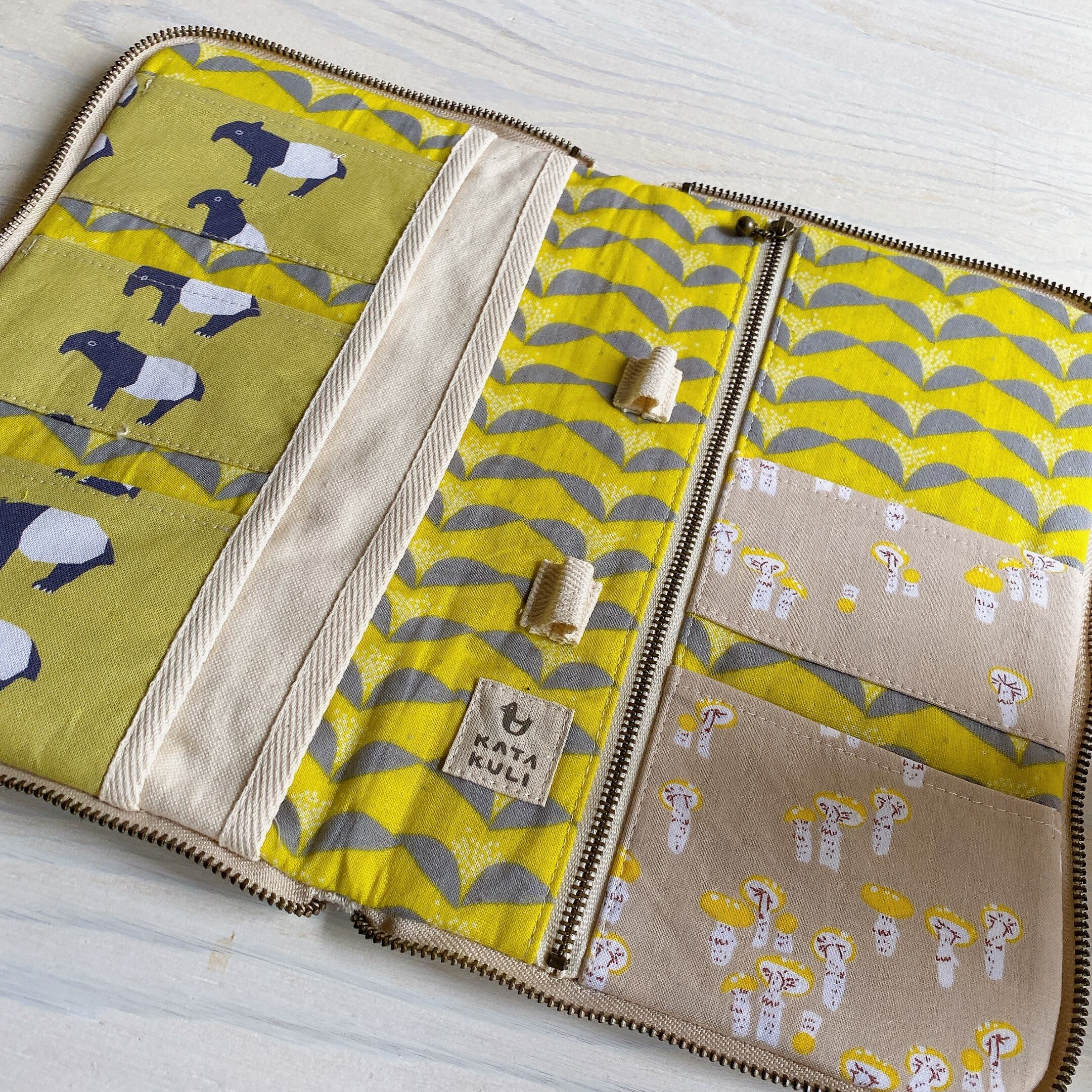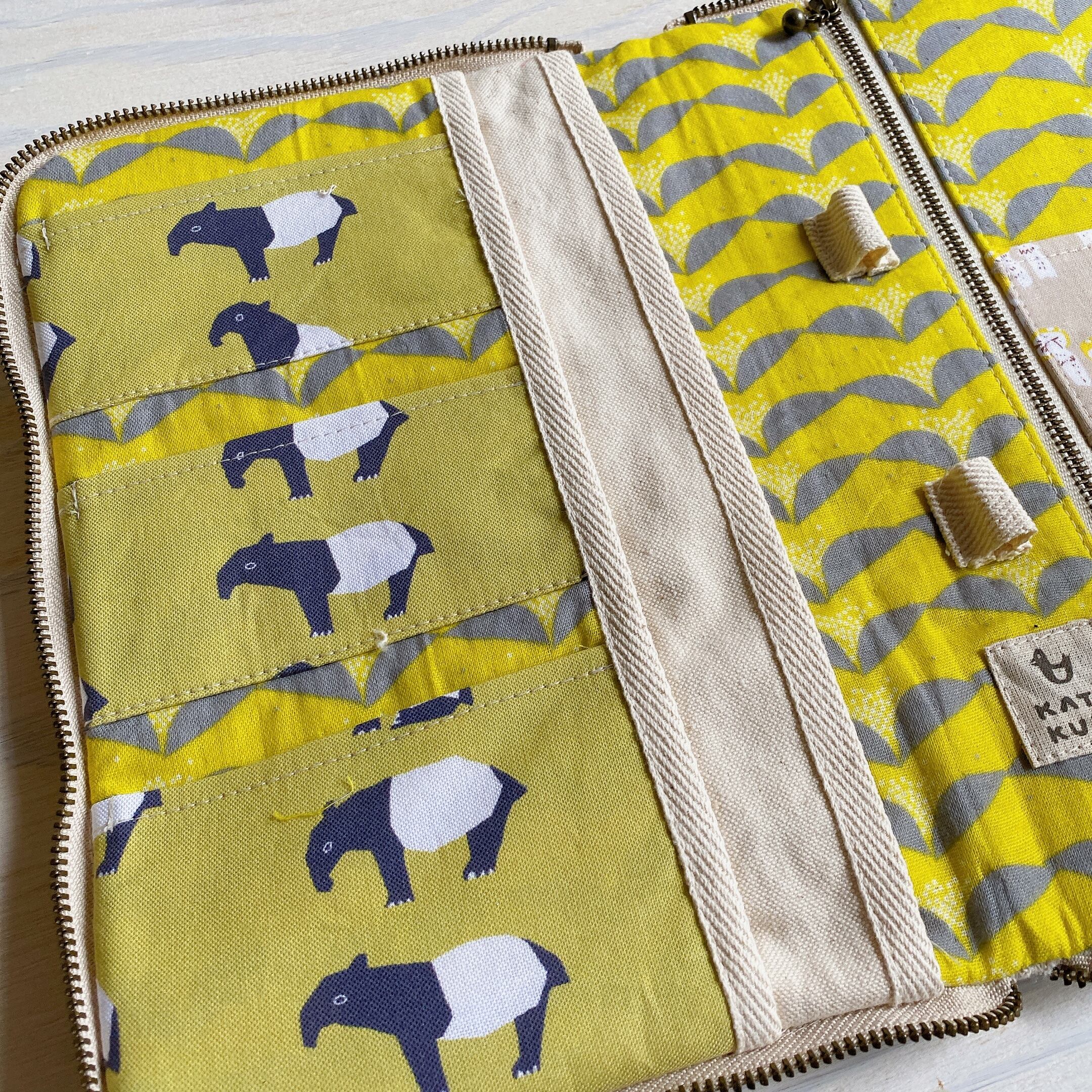 ケースがパカっと全開になるように、ファスナー止まりの部分に工夫をしています。