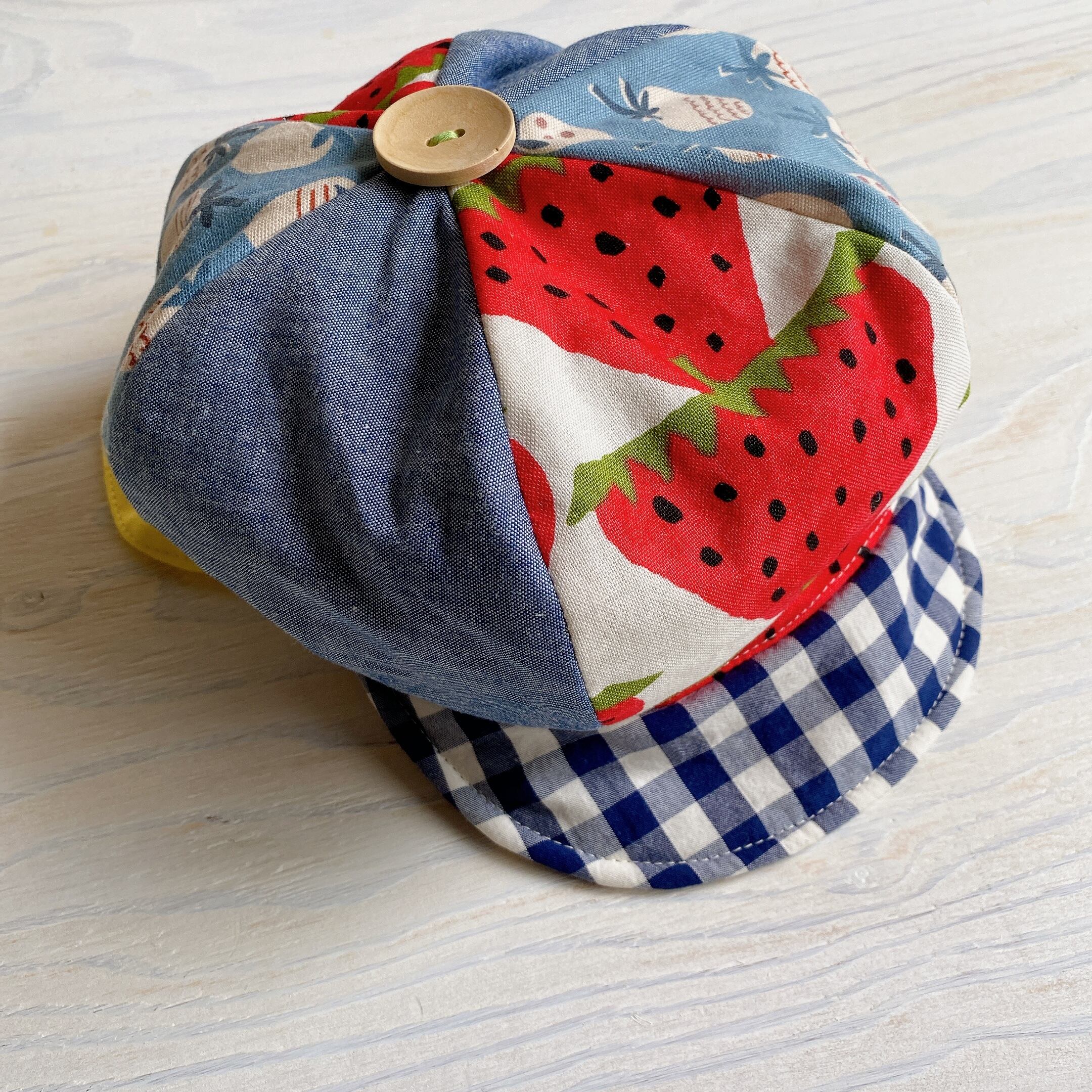 相性の良い3種類の生地を組み合わせて賑やかなキャスケットにしてみました。