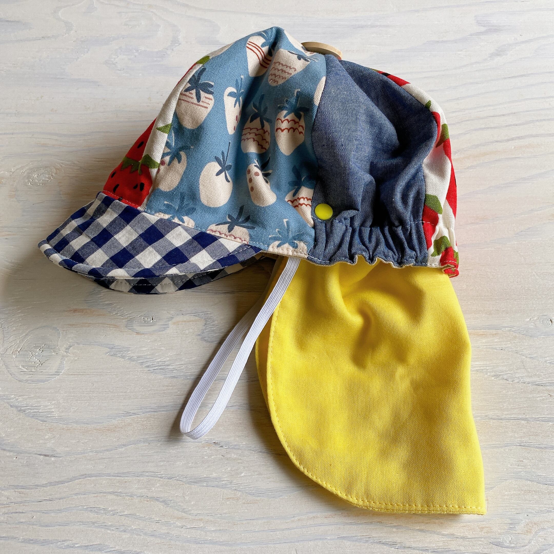 うしろがぐるっとゴムになっているのでかぶりやすくて長く使っていただけると思います♪
