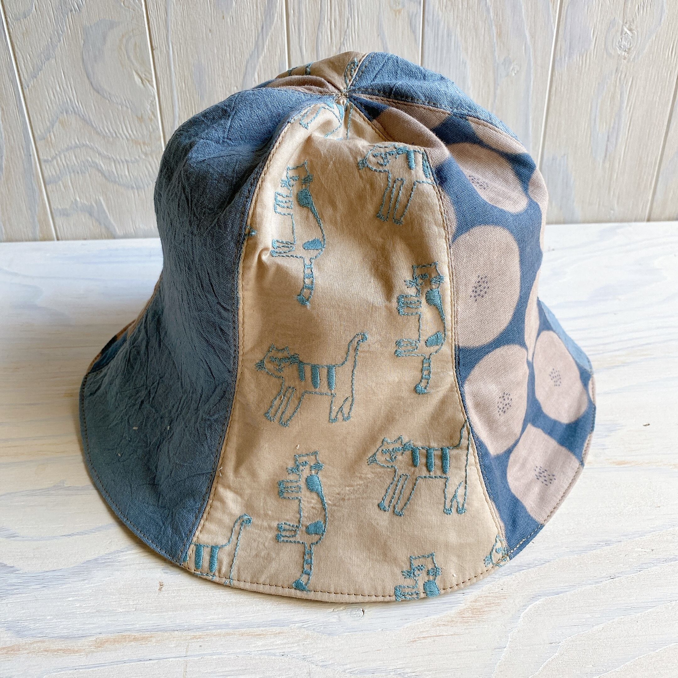 大人のチューリップ帽子(刺繍ネコベージュ)