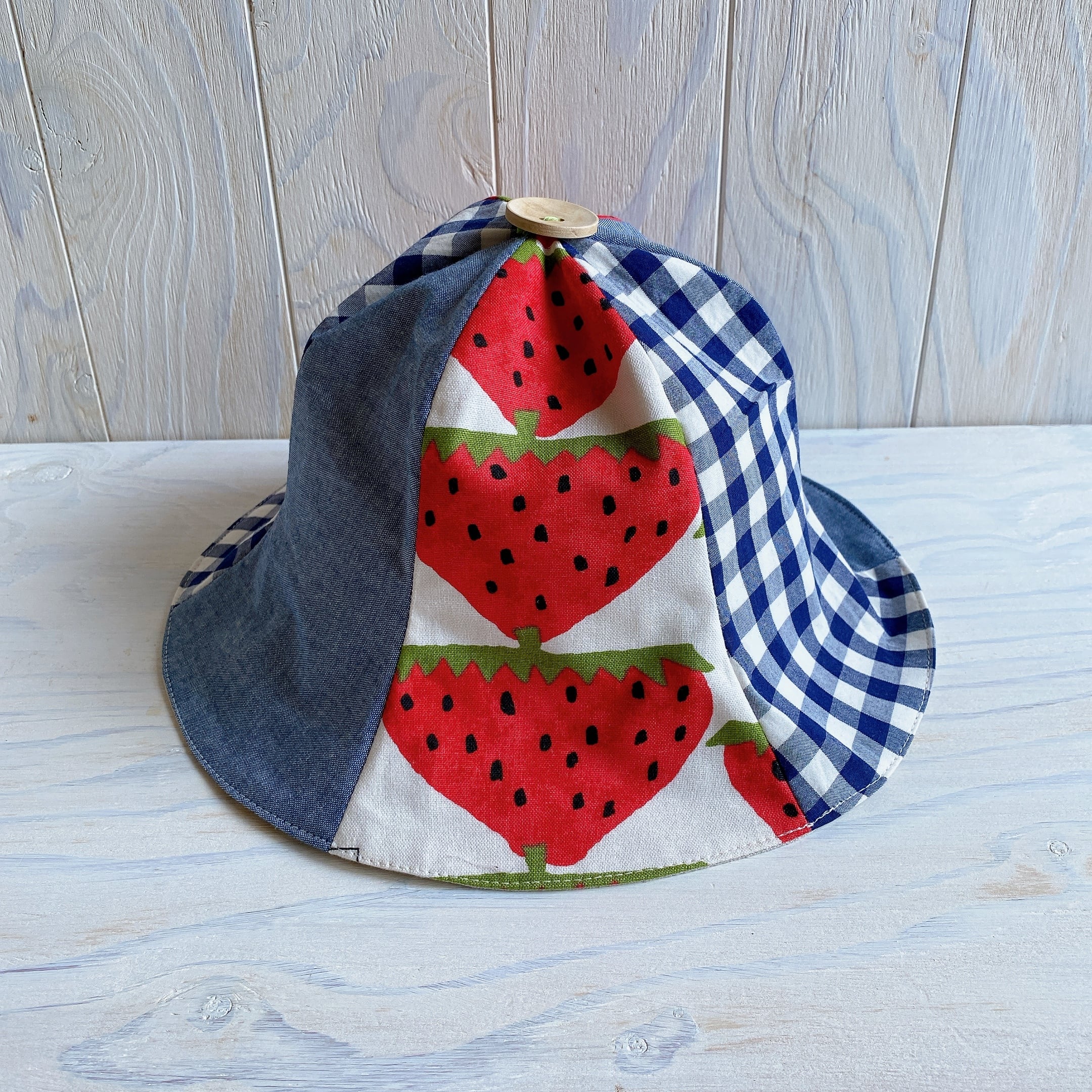 相性の良い3色の生地を組み合わせてチューリップハットにしました。
